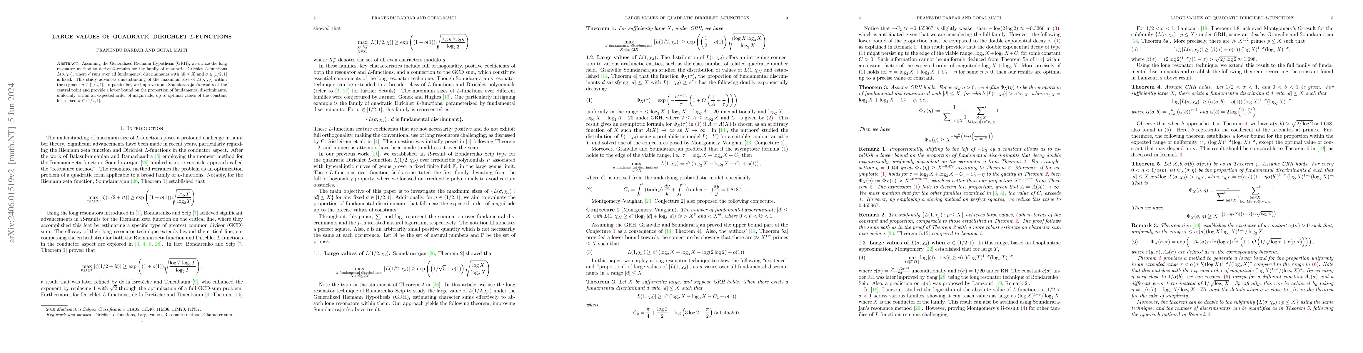 This paper, under the Generalized Riemann Hypothesis, employs the long resonator method to achieve $\Omega$-results for quadratic Dirichlet $L$-functions $L(\sigma, \chi_d)$, improving upon Soundararajan's central point results and providing a lower bound on the proportion of fundamental discriminants for optimal sizes.