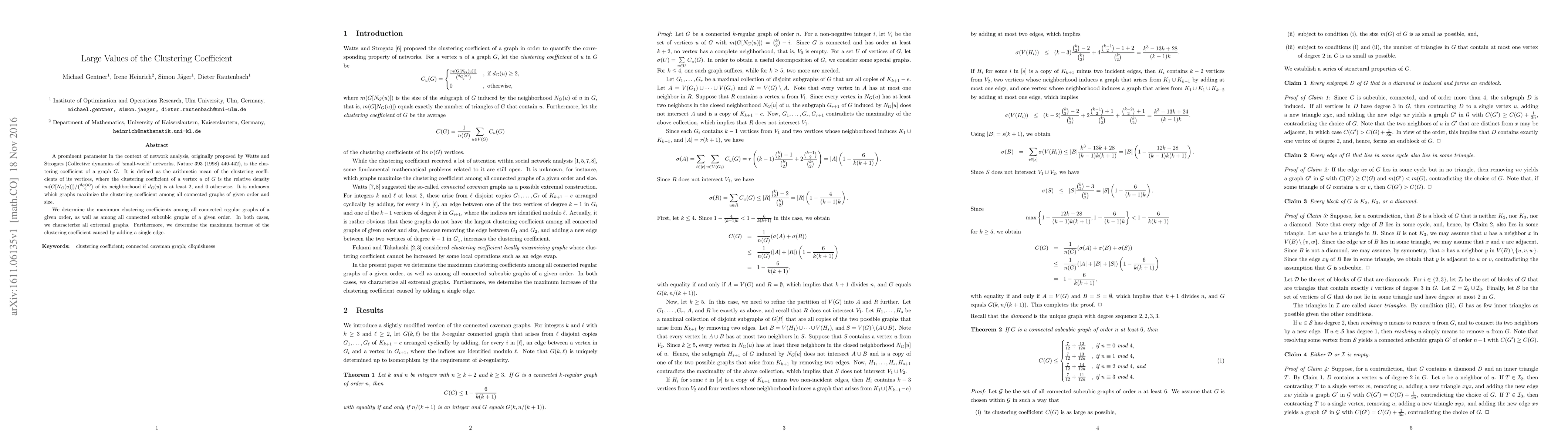 The study finds that regular graphs and subcubic graphs with a given order maximize clustering coefficients, and it characterizes the extremal graphs in both cases. It also determines how adding one edge increases the coefficient.