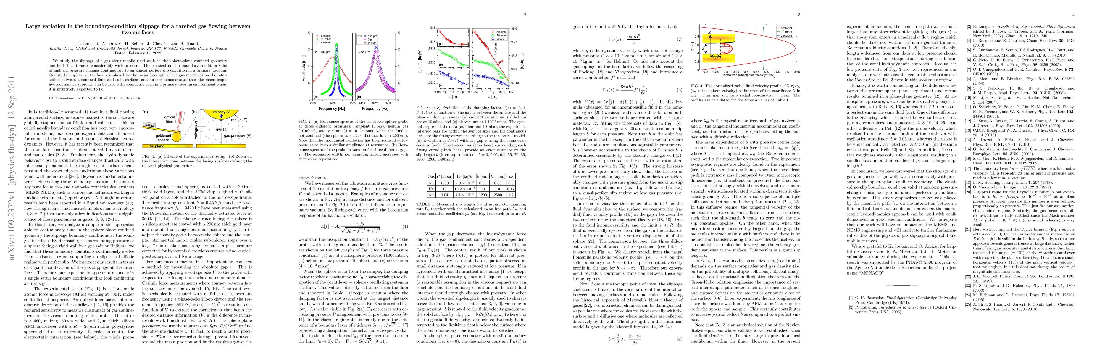 We study the slippage of a gas along mobile rigid walls in the sphere-plane confined geometry and find that it varies considerably with pressure. The classical no-slip boundary condition valid at ambient pressure changes continuously to an almost perfect slip condition in a primary vacuum. Our study emphasizes the key role played by the mean free-path of the gas molecules on the interaction between a confined fluid and solid surfaces and further demonstrates that the macroscopic hydrodynamics approach can be used with confidence even in a primary vacuum environment where it is intuitively expected to fail.