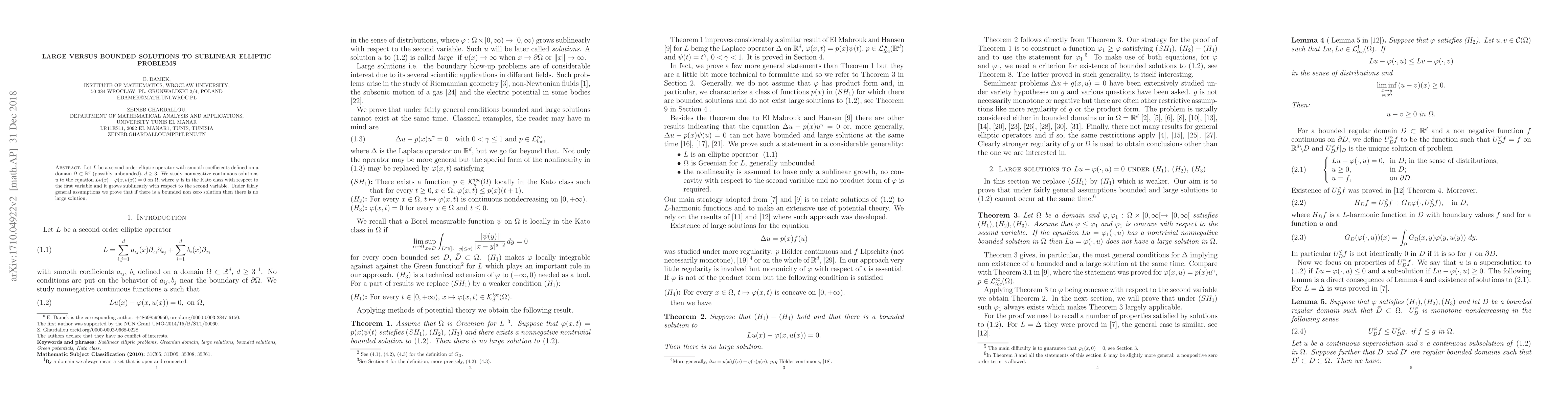 This research paper explores whether a bounded solution to a sublinear elliptic problem implies no large solution, finding that they are mutually exclusive under certain assumptions.