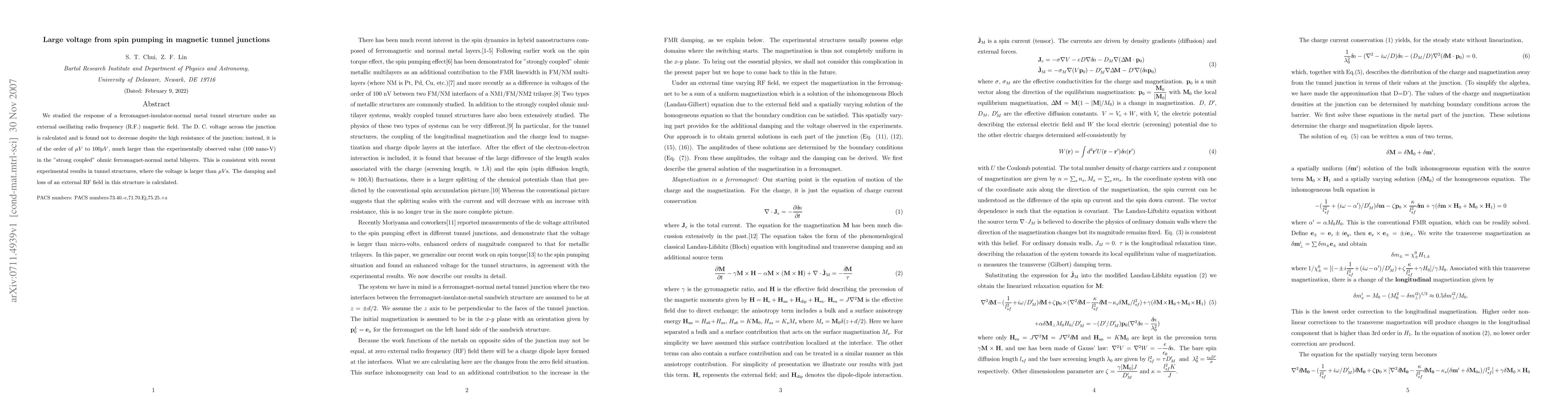 Researchers discovered large voltage generation in magnetic tunnel junctions under RF magnetic fields, contradicting previous experimental findings that showed much smaller voltages, and calculated the damping of external RF fields in these structures.