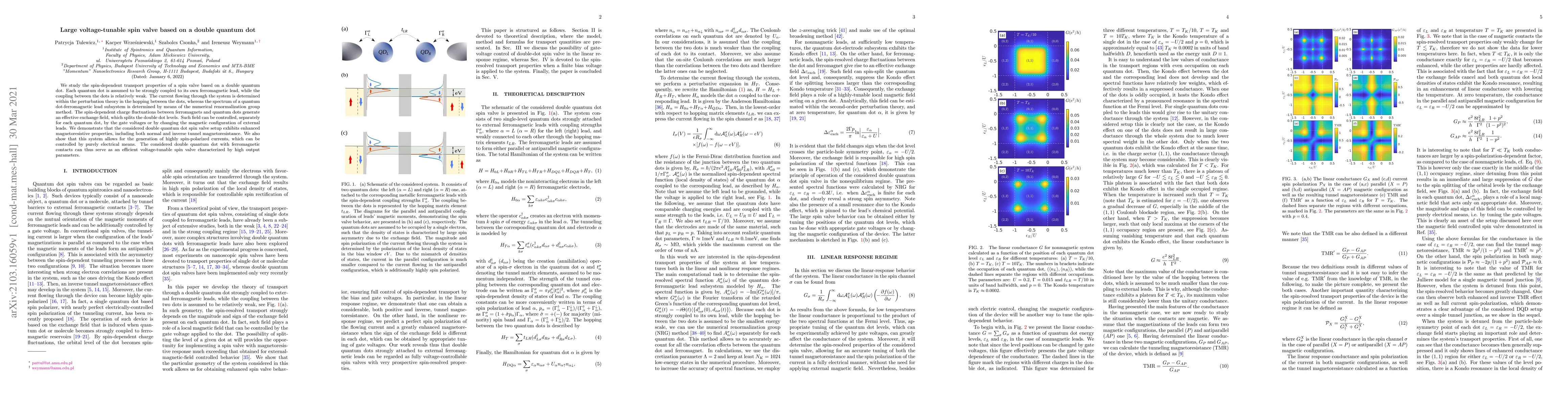 The paper presents a detailed analysis of a double quantum dot spin valve using perturbation theory and numerical renormalization group method, providing a comprehensive understanding of its transport properties.