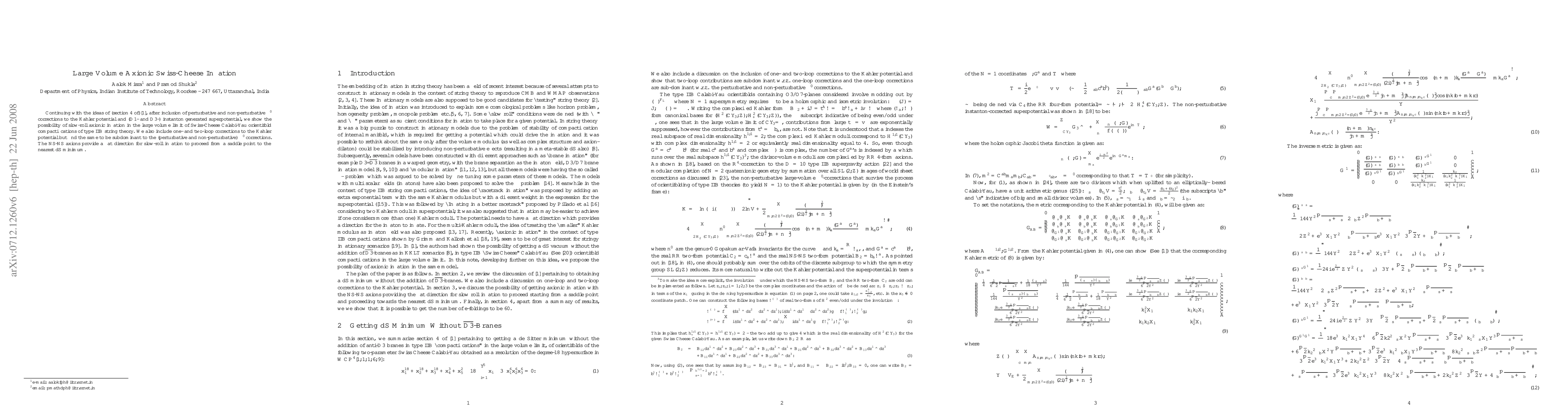 This paper explores the potential for slow-roll axionic inflation in large volume Swiss-Cheese Calabi-Yau compactifications of type IIB string theory, incorporating alpha' corrections and instanton effects. The study finds that NS-NS axions enable a flat inflationary path from a saddle point to a de Sitter minimum, with higher-loop corrections deemed subdominant.