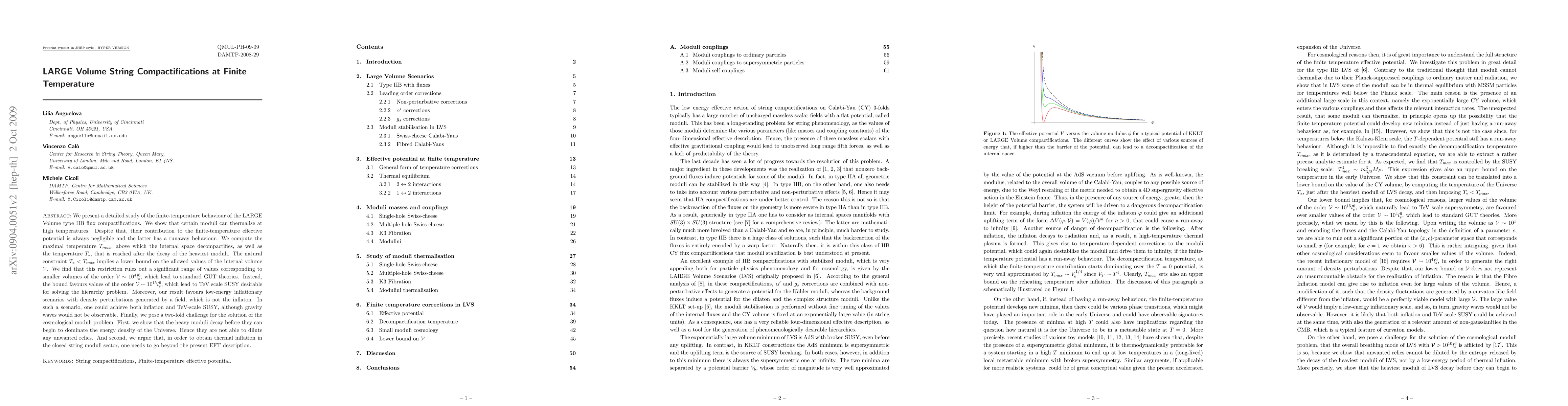 Researchers study LARGE Volume string compactifications at finite temperature, finding that certain moduli can thermalize but their effect on the effective potential is negligible, leading to a lower bound on allowed internal volumes.