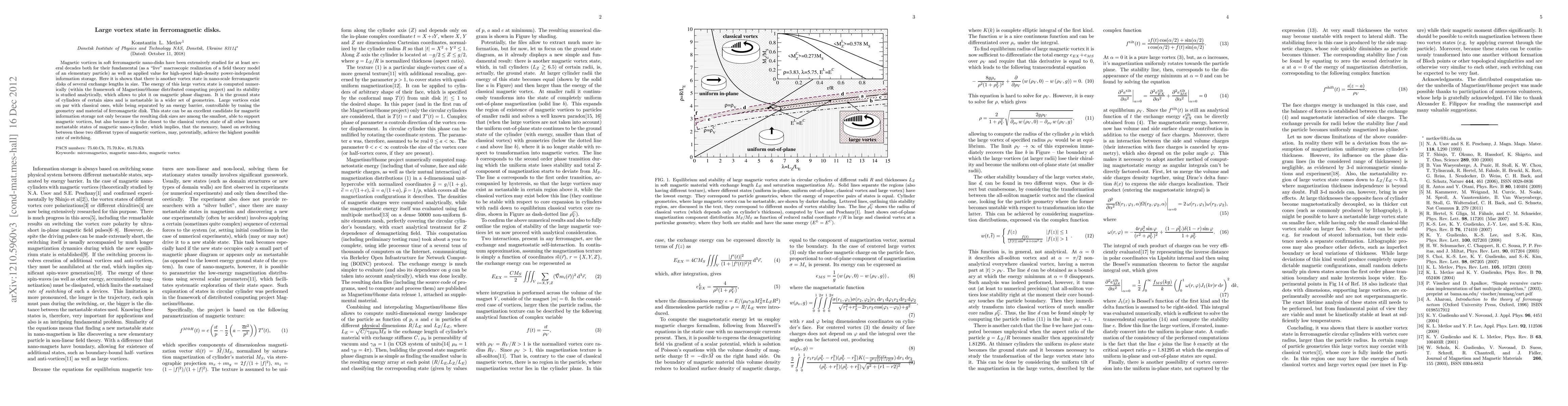Researchers discovered a new stable vortex state in ferromagnetic disks with large thickness-dependent core profiles, offering potential for high-speed magnetic information storage. This state is more stable than other known metastable states of magnetic nano-cylinders.