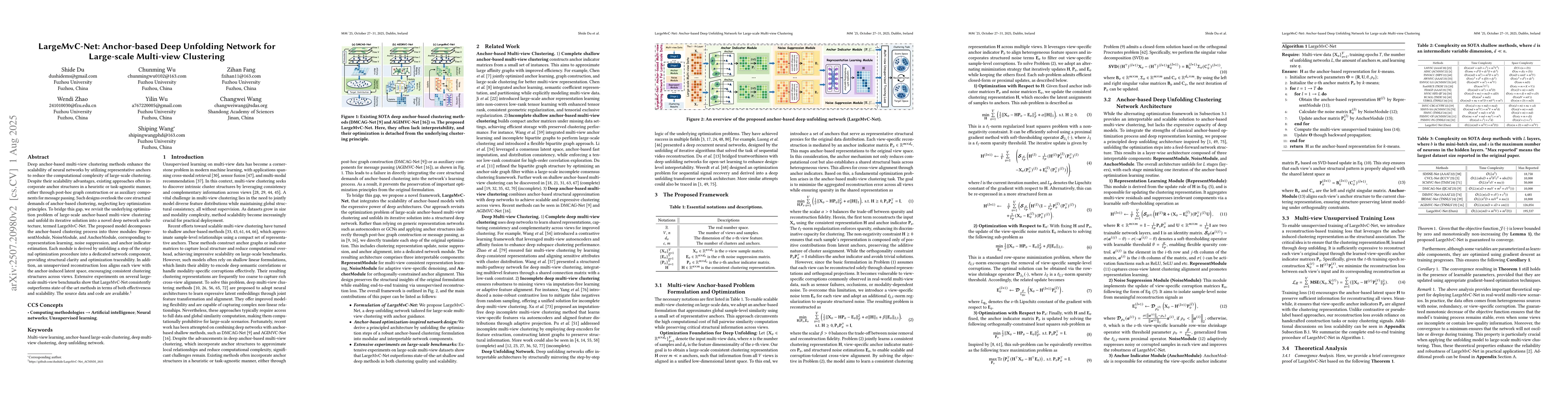 The paper presents LargeMvC-Net, a deep anchor-based multi-view clustering architecture that integrates anchor optimization into a scalable deep unfolding framework, ensuring robust alignment and semantic preservation across both complete and incomplete settings.