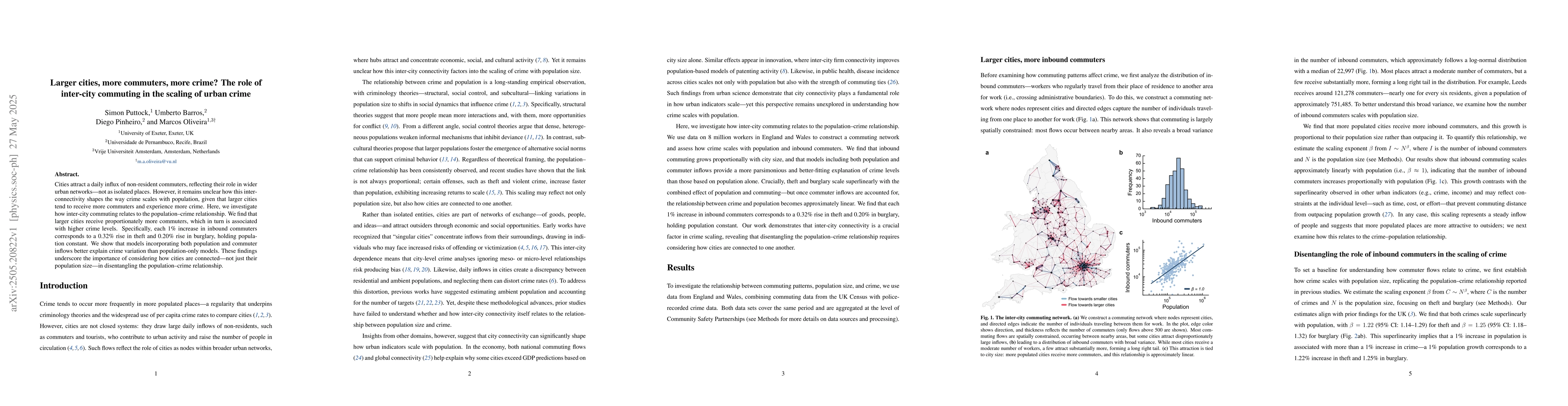 The paper investigates the relationship between inter-city commuting and urban crime scaling using statistical analysis of population and commuter inflow data.