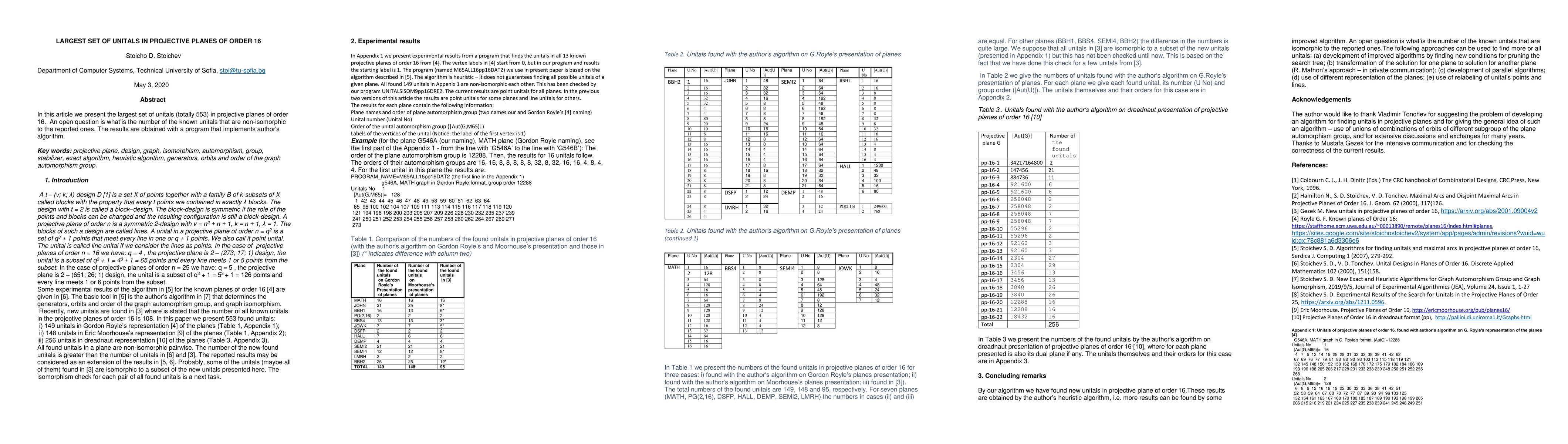 This paper reports the largest set of 553 unitals in projective planes of order 16, obtained using a specialized algorithm implemented in a program. The study leaves open the question of how many known unitals exist that are not isomorphic to those reported.