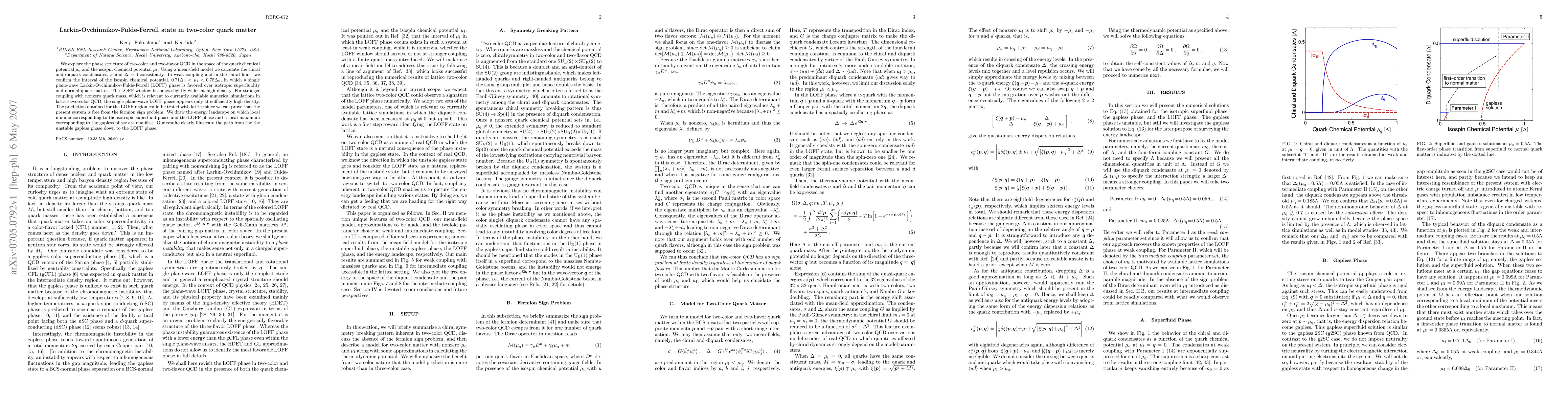 This paper investigates the phase structure of two-color and two-flavor QCD under quark chemical potential and isospin chemical potential, confirming the existence of a Larkin-Ovchinnikov-Fulde-Ferrell (LOFF) phase in a specific range of isospin chemical potential. The study predicts the LOFF phase's stability at high densities and suggests it can be tested via lattice simulations, free from the fermion sign problem.