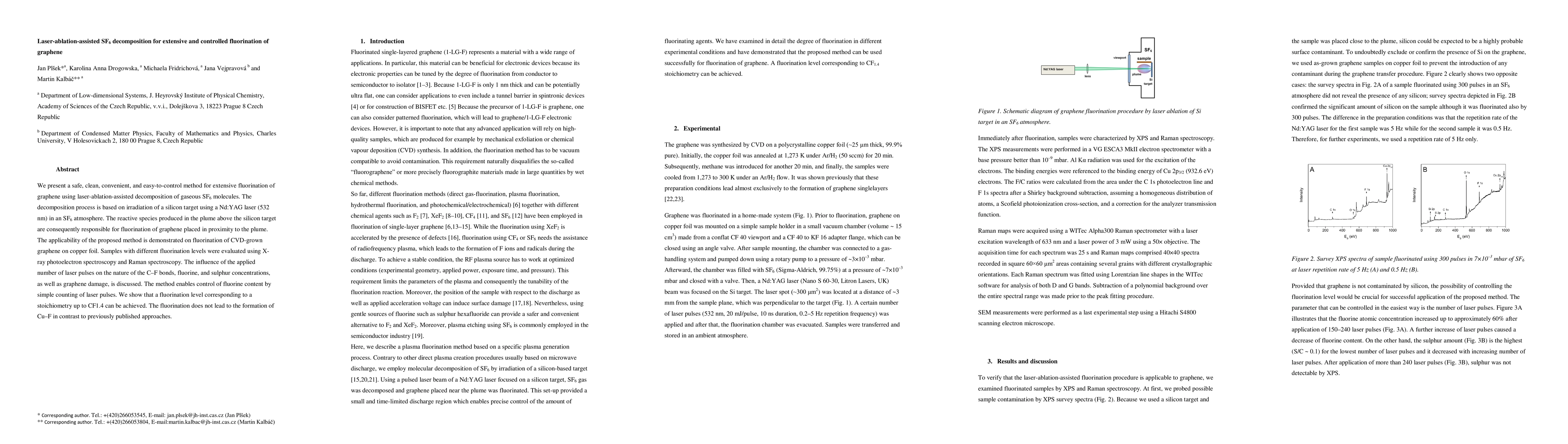 Summary: This paper introduces a laser-ablation-assisted method for the extensive fluorination of graphene through the decomposition of SF6 gas, offering a safe, clean, and easily controlled process. The method ensures uniform fluorination while minimizing risks.