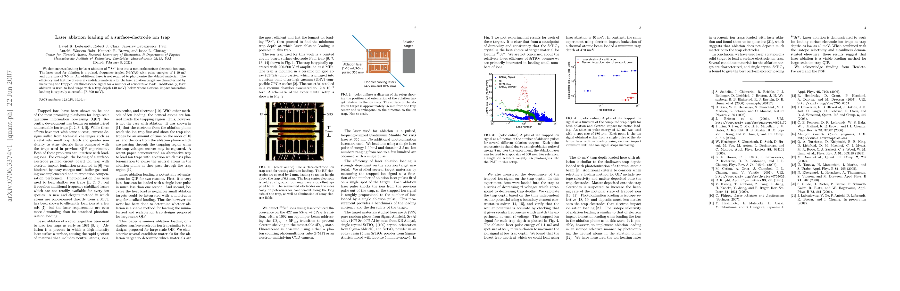 The development of a laser ablation method for loading surface-electrode ion traps at low trap depths.