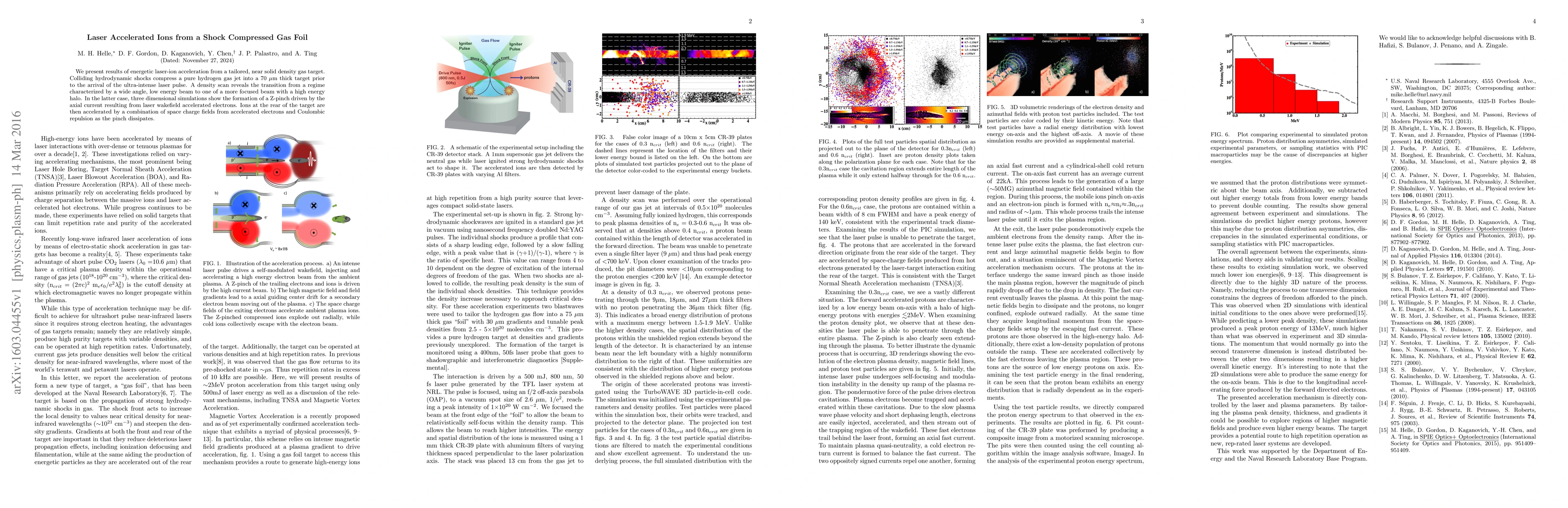 This study investigates laser-ion acceleration from a shock-compressed gas foil, demonstrating a transition from a broad, low-energy beam to a focused, high-energy beam. The mechanism involves a Z-pinch driven by laser wakefield electrons, with ions at the target's rear accelerated by space charge fields and Coulombic repulsion.