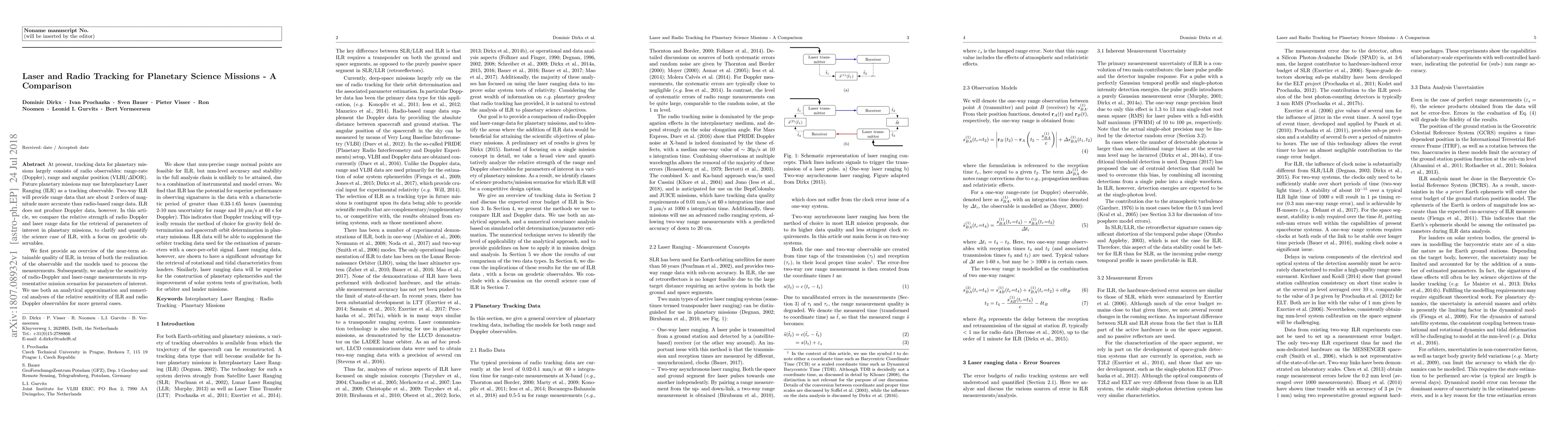 This paper compares the effectiveness of Interplanetary Laser Ranging (ILR) and radio Doppler tracking for planetary missions, finding that while ILR offers significantly more precise range data, radio Doppler remains superior for gravity and orbit determination. ILR excels in retrieving rotational and tidal characteristics, as well as improving planetary ephemerides and tests of gravitation.