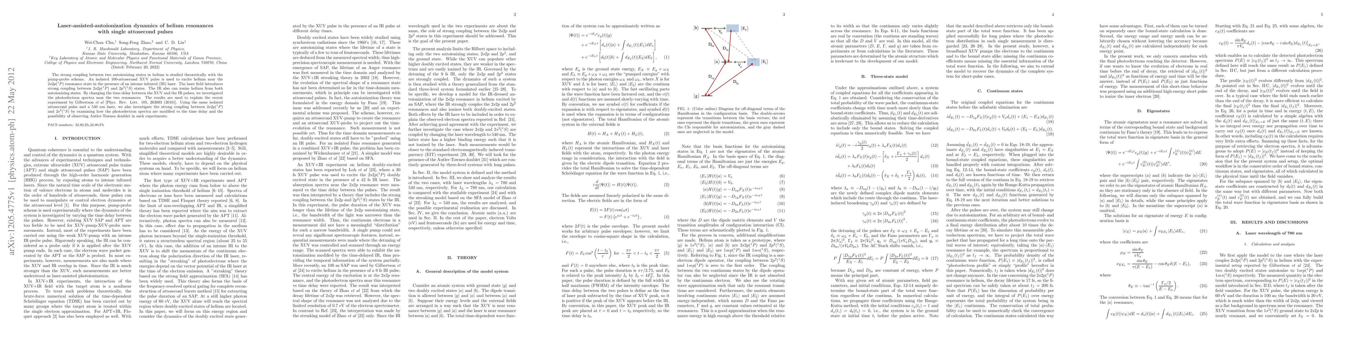 This paper theoretically investigates the dynamics of helium resonances using laser-assisted autoionization with single attosecond pulses, exploring the coupling between autoionizing states and the influence of an intense infrared laser on photoelectron spectra. The study aims to explain experimental results and explore potential Autler-Townes doublet observations.