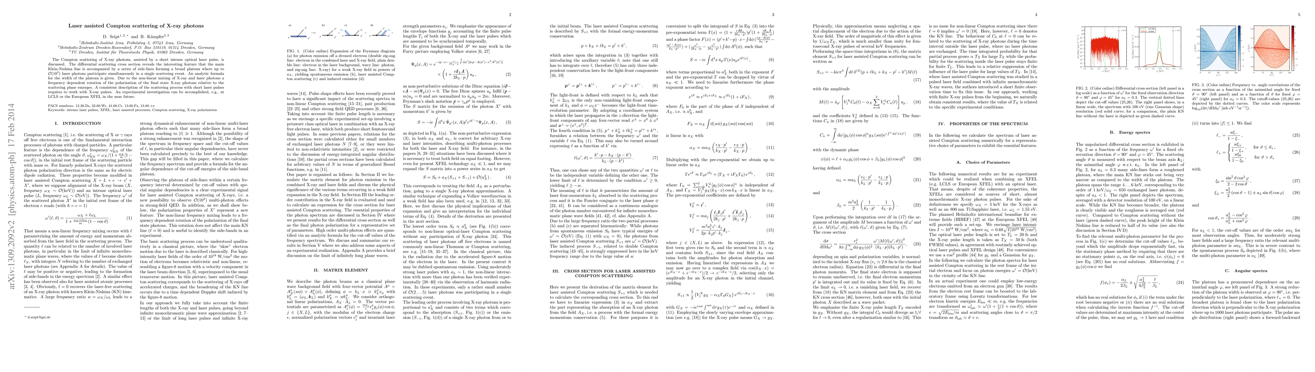 The Compton scattering of X-ray photons, assisted by a short intense optical laser pulse, is discussed. The differential scattering cross section reveals the interesting feature that the main Klein-Nishina line is accompanied by a series of side-lines forming a broad plateau where up to ${\cal O} (10^3)$ laser photons participate simultaneously in a single scattering event. An analytic formula for the width of the plateau is given. Due to the non-linear mixing of X-ray and laser photons a frequency dependent rotation of the polarization of the final state X-ray photons relative to the scattering plane emerges. A consistent description of the scattering process with short laser pulses requires to work with X-ray pulses. An experimental investigation can be accomplished, e.g., at LCLS or the European XFEL in the near future.