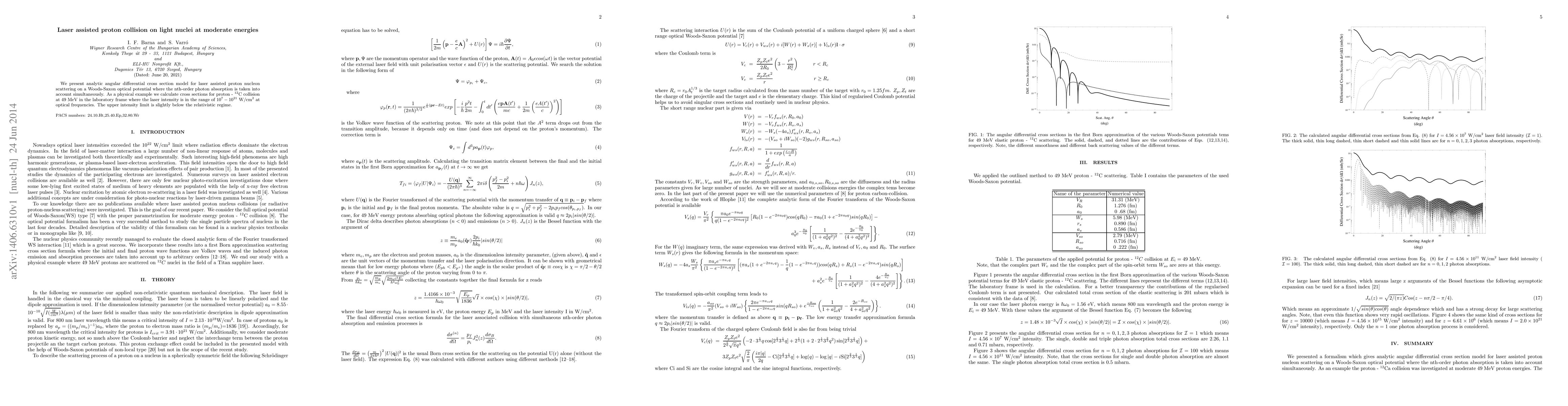 We present analytic angular differential cross section model for laser assisted proton nucleon scattering on a Woods-Saxon optical potential where the nth-order photon absorption is taken into account simultaneously. As a physical example we calculate cross sections for proton - $^{12}$C collision at 49 MeV in the laboratory frame where the laser intensity is in the range of $ 10^{7} - 10^{21}$ W/cm$^2$ at optical frequencies. The upper intensity limit is slightly below the relativistic regime.