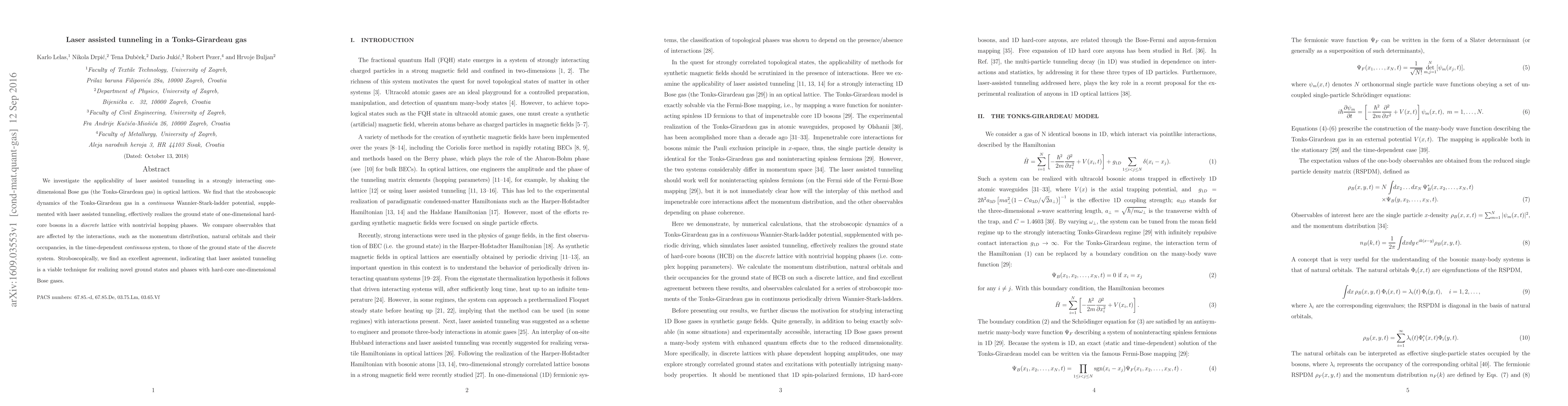 This paper explores laser assisted tunneling in a strongly interacting one-dimensional Bose gas, specifically the Tonks-Girardeau gas, within optical lattices. The study shows that this method effectively realizes the ground state of one-dimensional hard-core bosons with nontrivial hopping phases, achieving excellent stroboscopic agreement with discrete lattice systems.