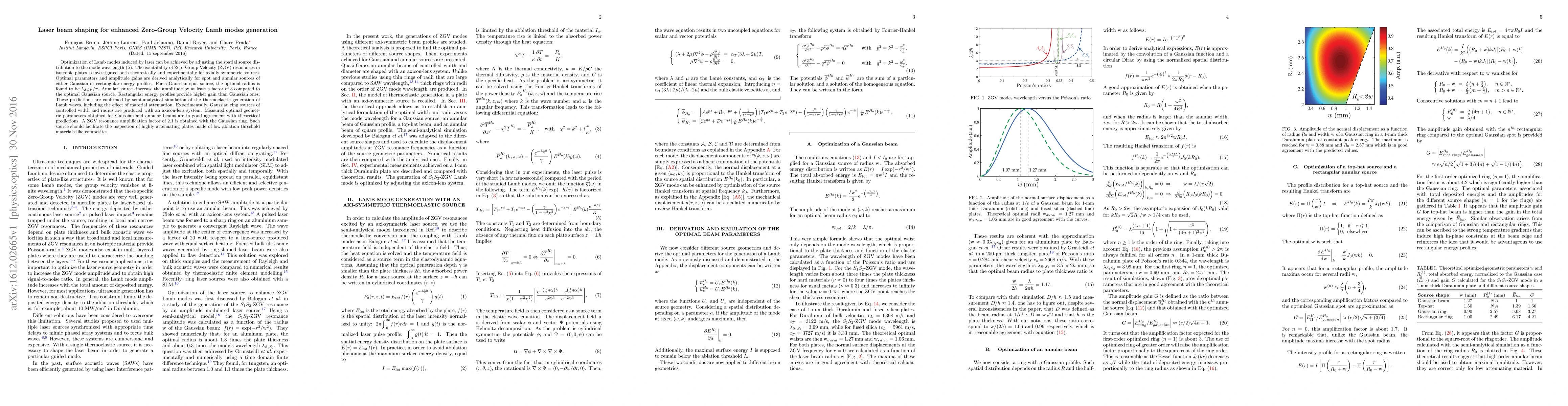 Researchers developed laser beam sources to enhance Zero-Group Velocity Lamb modes in isotropic plates, achieving a 2.1 amplification factor with optimal parameters.
