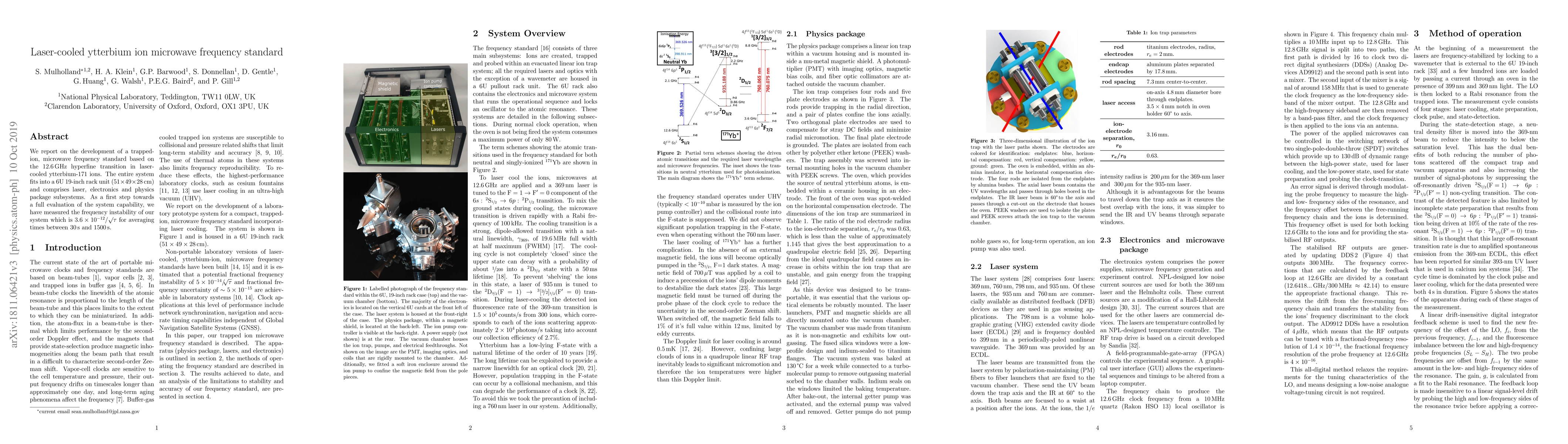 This paper details a compact, 6U rack-mounted laser-cooled ytterbium-171 ion frequency standard utilizing the 12.6 GHz hyperfine transition. The system's fractional frequency instability was measured at $3.6\times10^{-12}/\surd\tau$ for averaging times from 30 s to 1500 s.