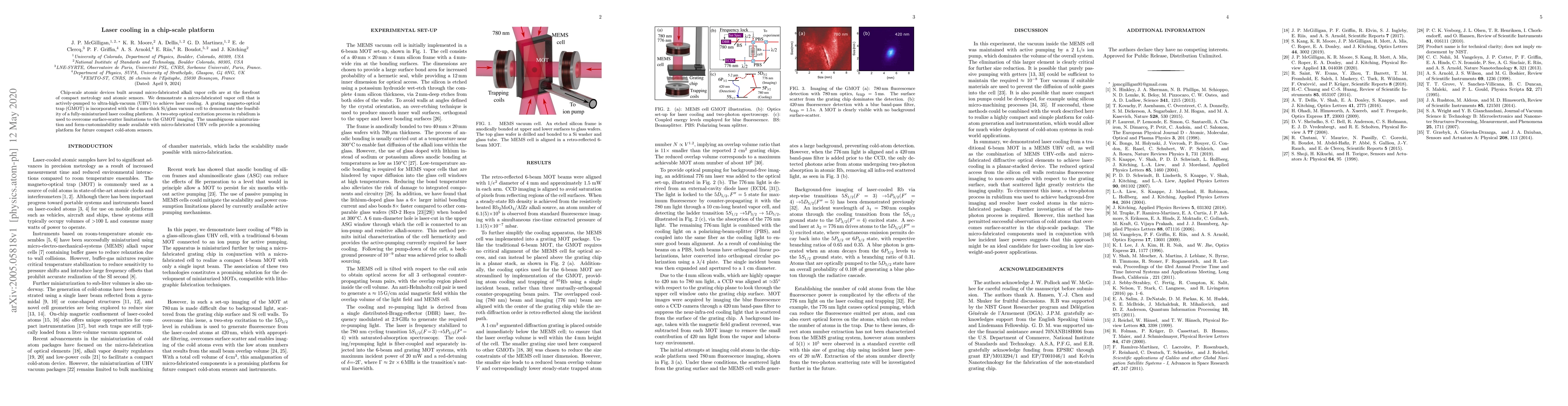 The research demonstrates a micro-fabricated vapor cell for laser cooling, utilizing a grating magneto optical trap (GMOT) within a Si/glass vacuum cell. The cell is actively pumped to ultra-high vacuum (UHV) conditions, and a two-step optical excitation process in rubidium is employed to overcome surface-scatter limitations.