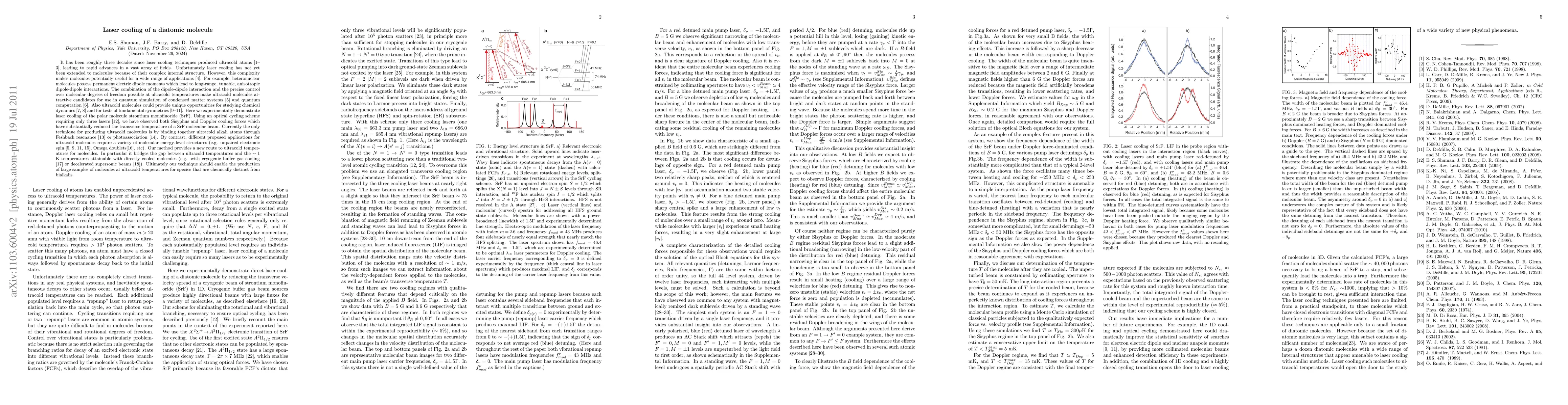 This paper demonstrates the laser cooling of strontium monofluoride (SrF) molecules using an optical cycling scheme, achieving both Sisyphus and Doppler cooling. This breakthrough provides a new method for producing ultracold molecules, potentially enabling applications in quantum simulation, chemical dynamics studies, and fundamental symmetry tests.