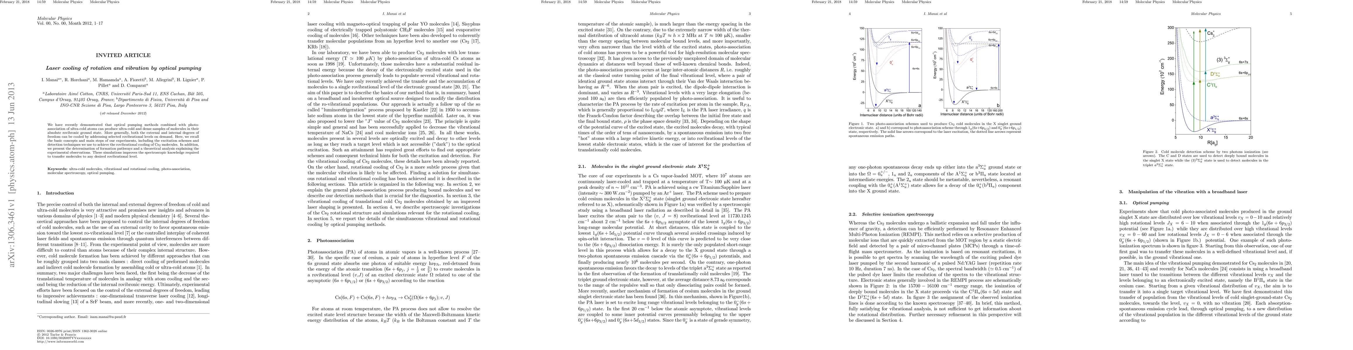 We have recently demonstrated that optical pumping methods combined with photoassociation of ultra-cold atoms can produce ultra-cold and dense samples of molecules in their absolute rovibronic ground state. More generally, both the external and internal degrees of freedom can be cooled by addressing selected rovibrational levels on demand. Here, we recall the basic concepts and main steps of our experiments, including the excitation schemes and detection techniques we use to achieve the rovibrational cooling of Cs2 molecules. In addition, we present the determination of formation pathways and a theoretical analysis explaining the experimental observations. These simulations improves the spectroscopic knowledge required to transfer molecules to any desired rovibrational level.