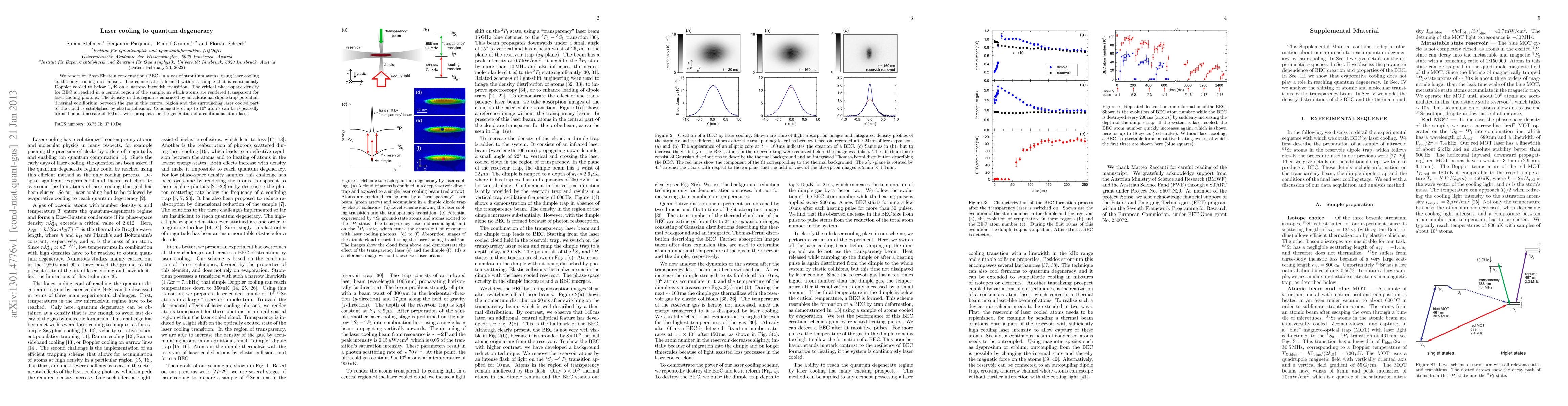 We report on Bose-Einstein condensation (BEC) in a gas of strontium atoms, using laser cooling as the only cooling mechanism. The condensate is formed within a sample that is continuously Doppler cooled to below 1\muK on a narrow-linewidth transition. The critical phase-space density for BEC is reached in a central region of the sample, in which atoms are rendered transparent for laser cooling photons. The density in this region is enhanced by an additional dipole trap potential. Thermal equilibrium between the gas in this central region and the surrounding laser cooled part of the cloud is established by elastic collisions. Condensates of up to 10^5 atoms can be repeatedly formed on a timescale of 100ms, with prospects for the generation of a continuous atom laser.