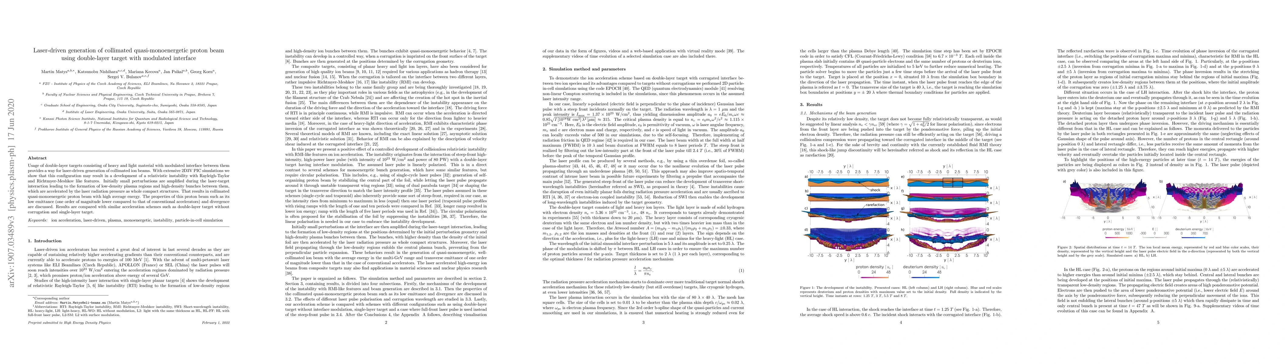 This paper demonstrates the generation of a collimated quasi-monoenergetic proton beam using a double-layer target with a modulated interface, driven by laser interaction. Simulations show that this setup can produce a relativistic instability, leading to the formation of compact, accelerated proton bunches with low emittance and divergence.