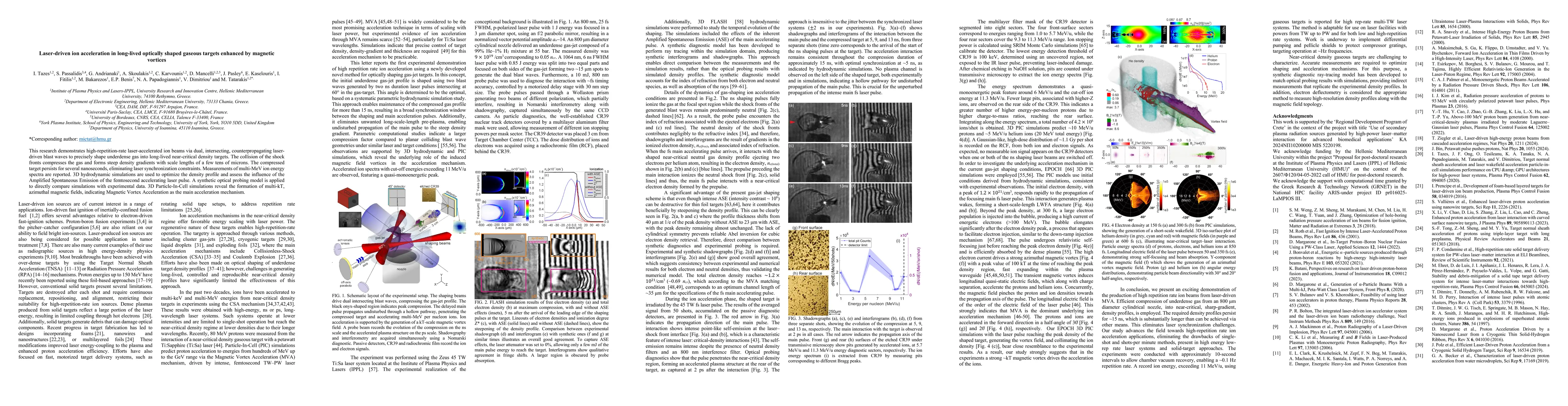 Researchers developed a method to create high-energy ion beams using laser-driven blast waves that shape underdense gas into long-lived targets, producing multi-MeV ions with magnetic vortex acceleration as the main mechanism.
