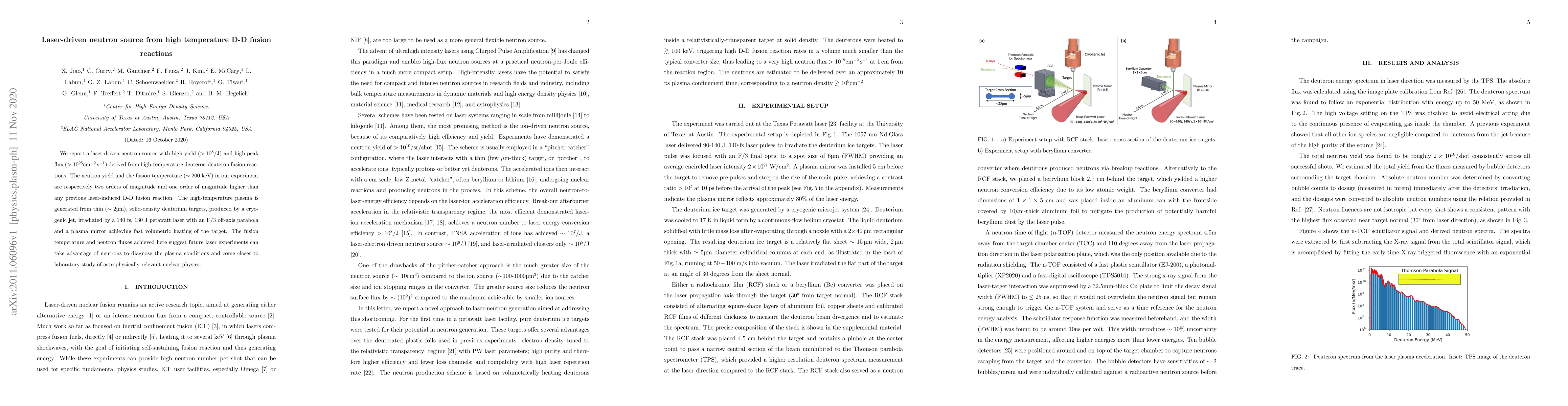 This paper reports a laser-driven neutron source achieving high yield and flux from deuteron-deuteron fusion, with an order of magnitude improvement over previous methods. The source uses a petawatt laser to heat thin deuterium targets, enabling high-temperature plasma and neutron diagnostics for astrophysical nuclear physics studies.