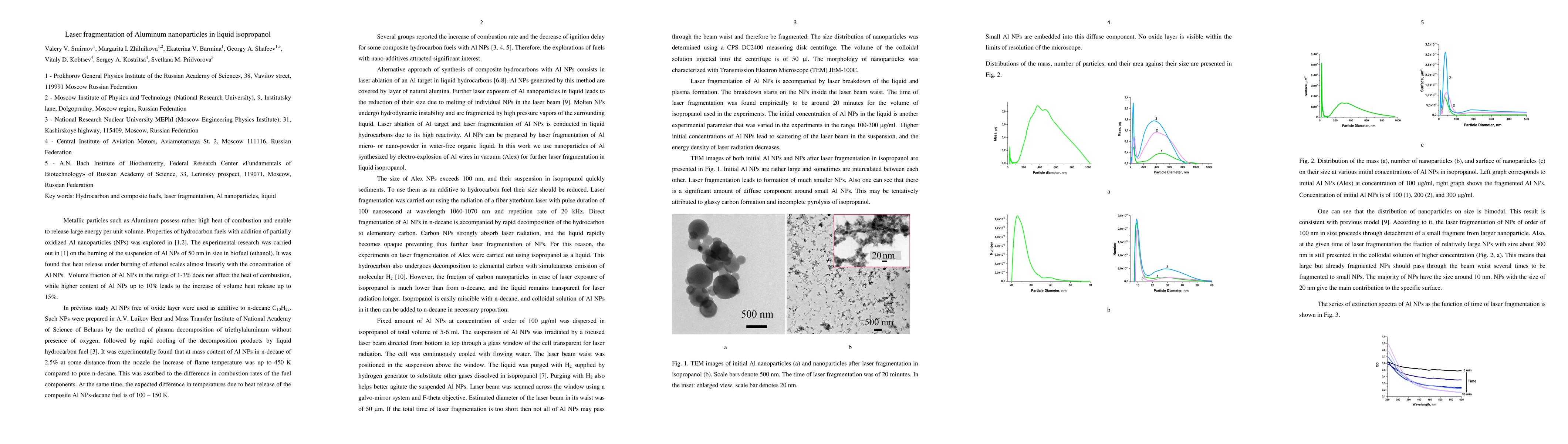 This study investigates the laser fragmentation of aluminum nanoparticles in liquid isopropanol, achieving a reduction in particle size from over 100 nm to 10 nm, potentially enhancing their use as additives in liquid hydrocarbon fuels.