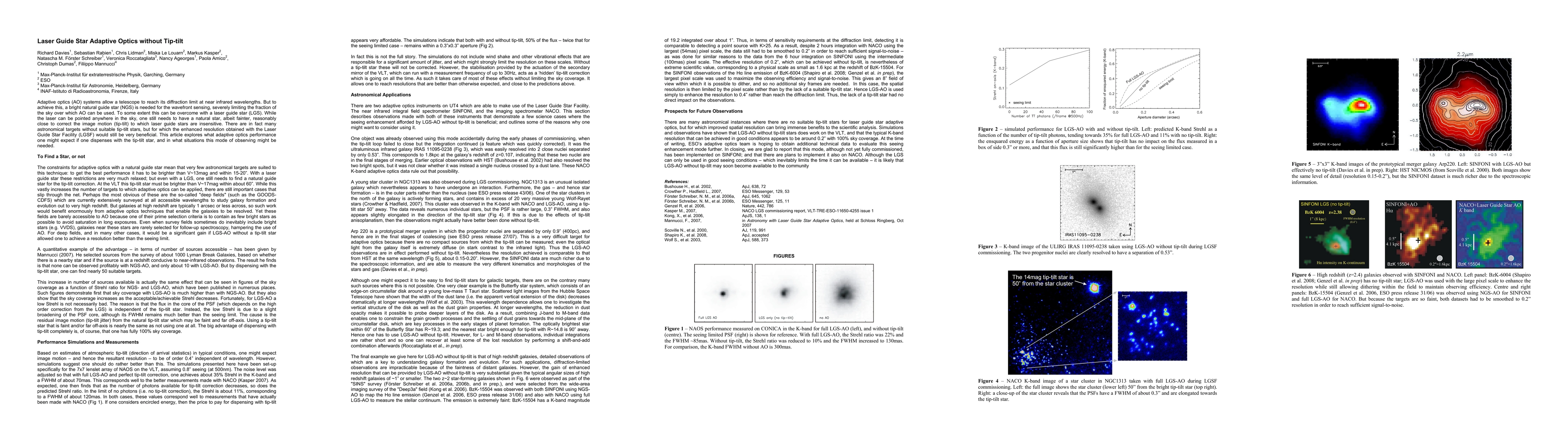 The research explores the performance of Laser Guide Star Adaptive Optics (LGS-AO) without tip-tilt correction, using simulations and observations from VLT instruments like SINFONI and NACO.