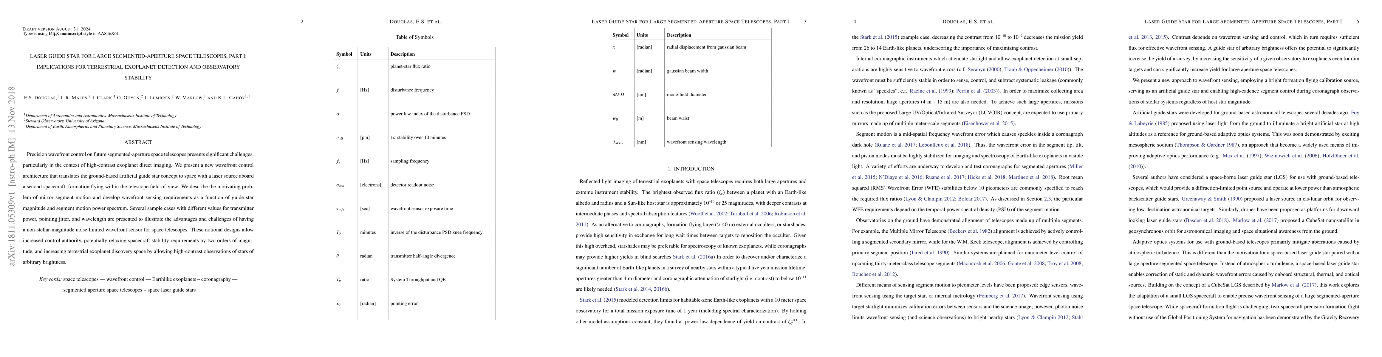 This research proposes a laser guide star system for space telescopes, using a laser from a separate spacecraft to address wavefront control challenges. It suggests increased control authority, potentially reducing spacecraft stability needs and enhancing terrestrial exoplanet detection across various star brightness levels.