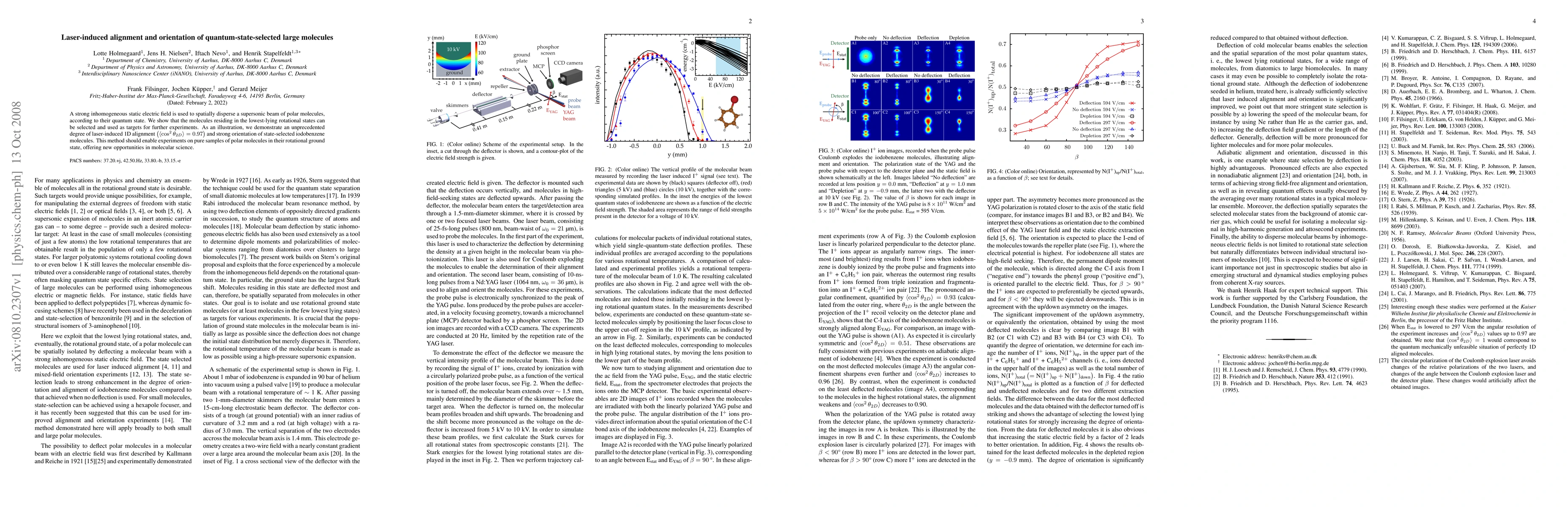 This paper demonstrates the use of a static electric field to select and spatially disperse polar molecules based on their quantum state, achieving laser-induced one-dimensional alignment and strong orientation of iodobenzene molecules. This technique opens new avenues for experiments using pure samples of polar molecules in their rotational ground state.