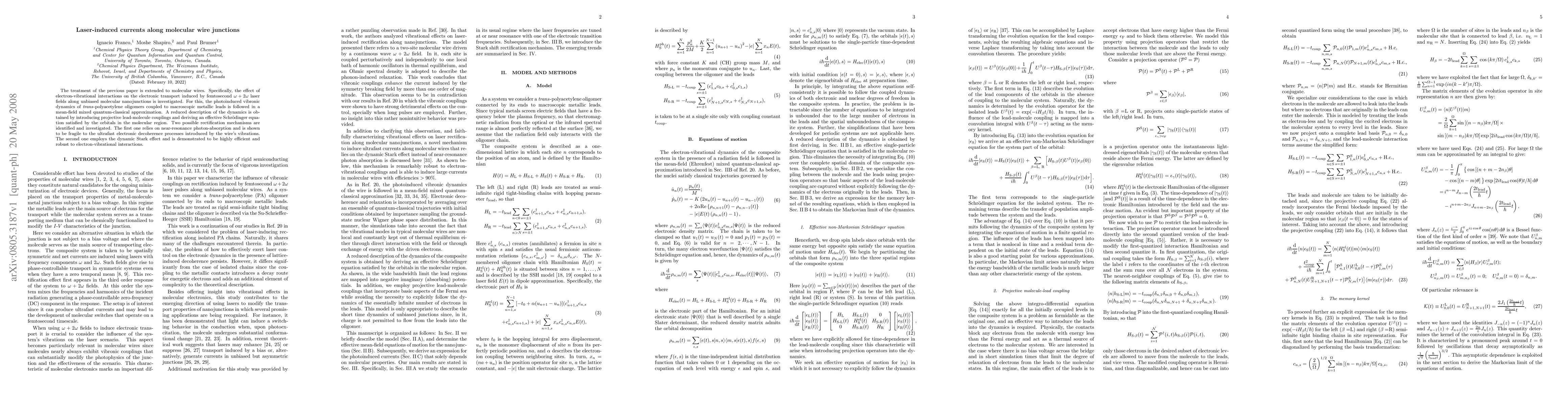 This paper investigates electron-vibrational interactions' impact on electronic transport in molecular wire junctions under femtosecond laser fields, identifying two rectification mechanisms: one fragile to electronic decoherence and another robust dynamic Stark effect-based mechanism.