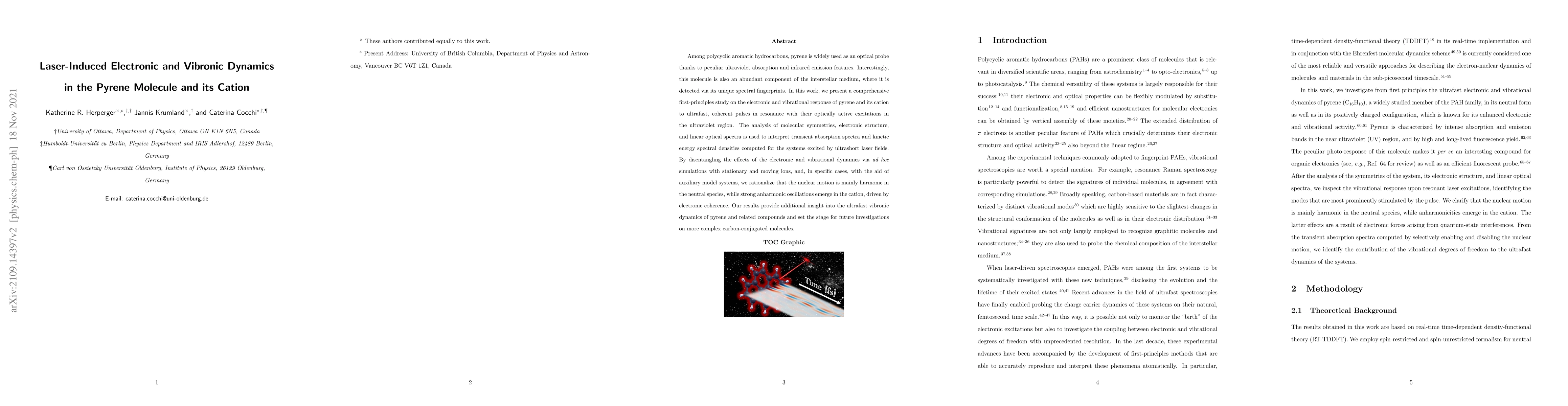 This study investigates the electronic and vibrational dynamics of pyrene and its cation under ultrafast laser pulses, revealing harmonic nuclear motion in the neutral species and strong anharmonic oscillations in the cation driven by electronic coherence. The findings enhance understanding of ultrafast vibronic dynamics in polycyclic aromatic hydrocarbons.