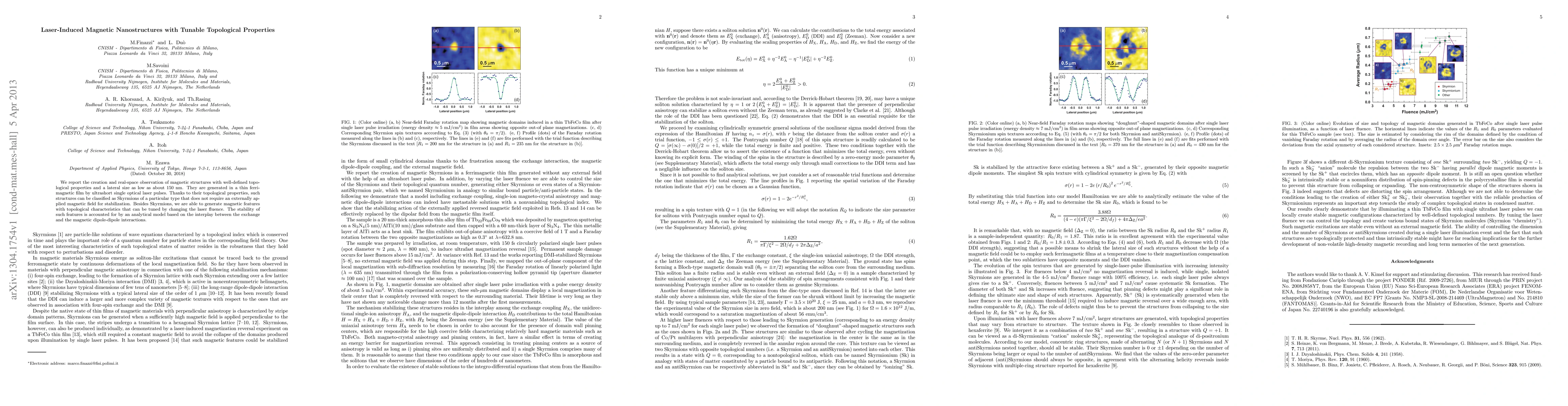 Researchers created magnetic nanostructures with tunable topological properties using ultrashort laser pulses, enabling the observation of Skyrmions without an external magnetic field.