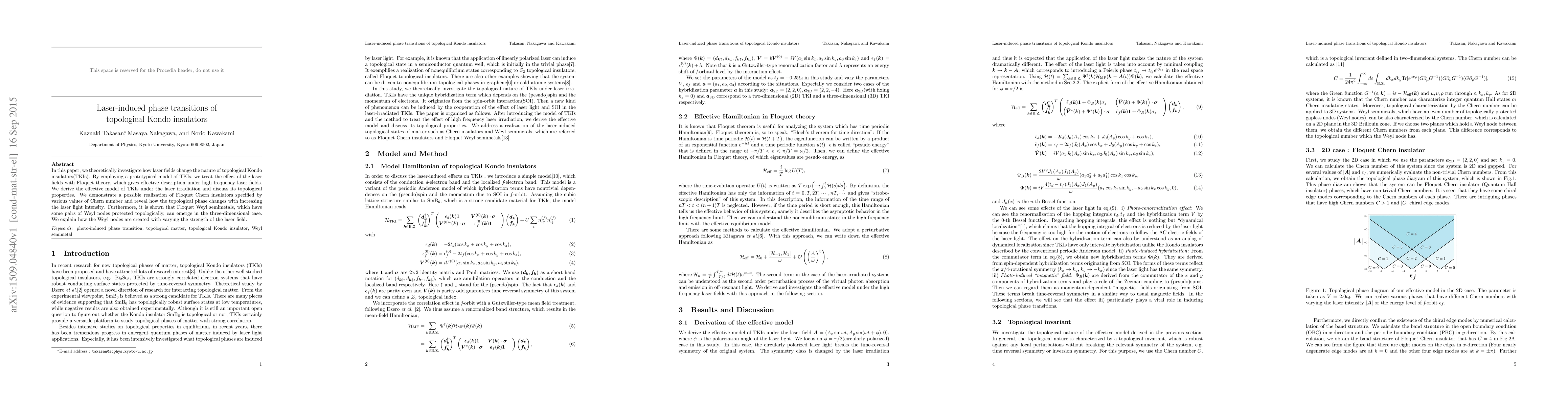 This paper theoretically explores how laser fields can induce phase transitions in topological Kondo insulators, employing Floquet theory to describe the effects of high-frequency laser irradiation. It reveals the emergence of Floquet Chern insulators and Weyl semimetals under varying laser intensities, detailing the topological changes and the creation of Weyl nodes.