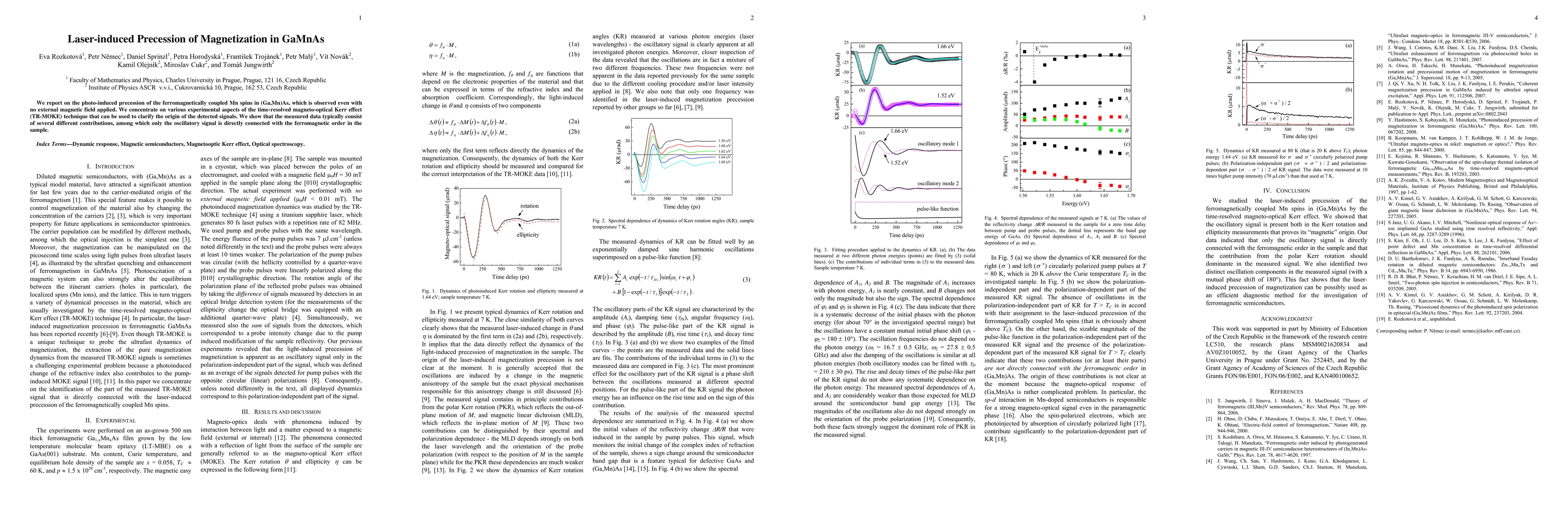 The research investigates laser-induced magnetization precession in GaMnAs without an external magnetic field. Using the time-resolved magneto-optical Kerr effect (TR-MOKE) technique, it identifies and separates various signal contributions, confirming that only the oscillatory signal directly relates to the ferromagnetic order in the sample.