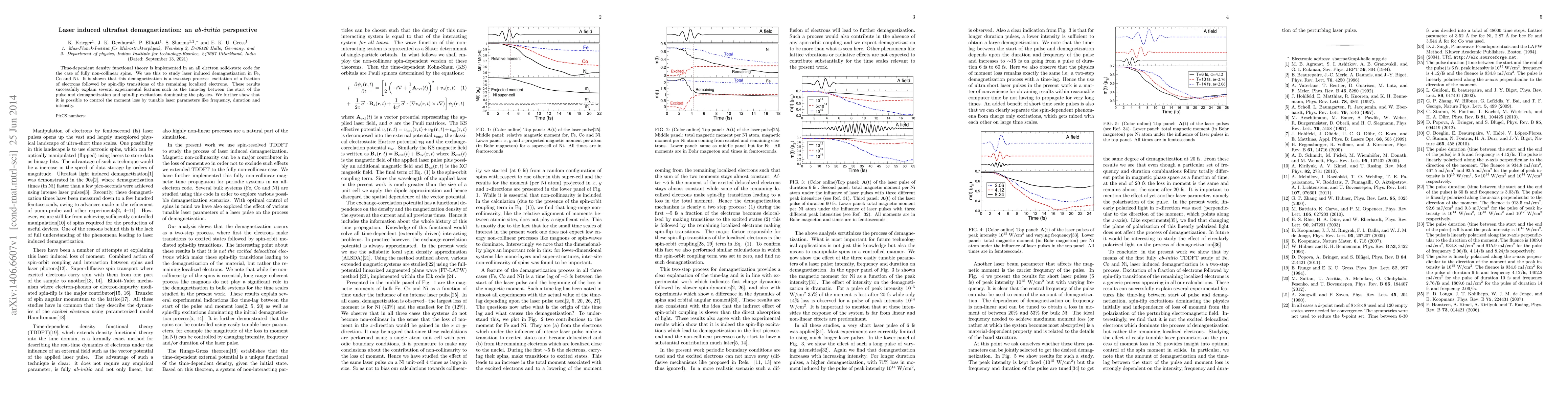 This paper uses time-dependent density functional theory to investigate laser-induced ultrafast demagnetization in Fe, Co, and Ni, revealing a two-step process involving electron excitation and spin-flip transitions. The findings explain experimental observations and demonstrate control over moment loss via tunable laser parameters.