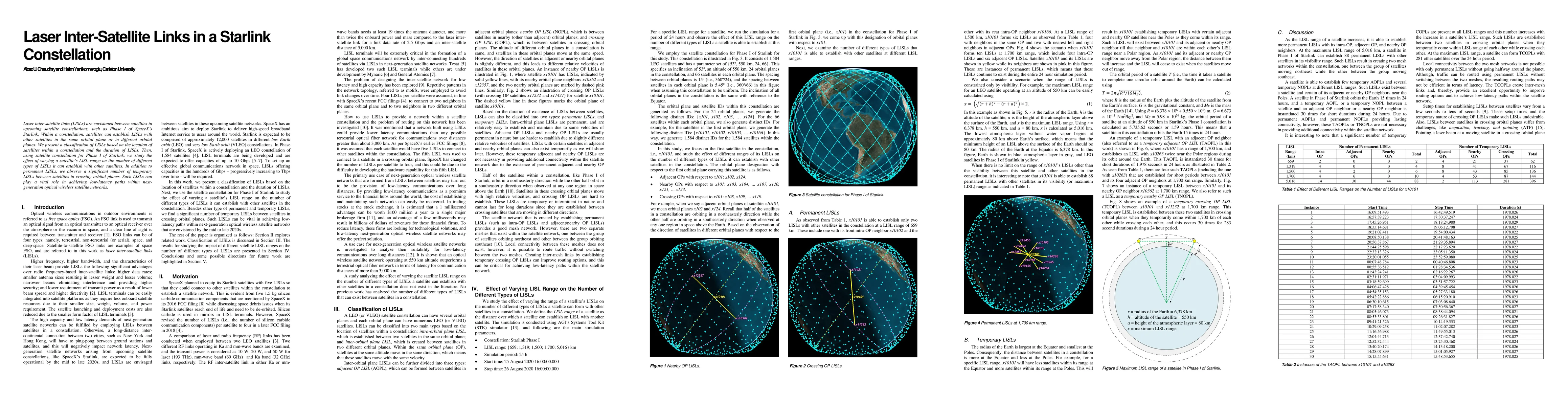 Laser inter-satellite links (LISLs) are envisioned between satellites in upcoming satellite constellations, such as Phase I of SpaceX's Starlink. Within a constellation, satellites can establish LISLs with other satellites in the same orbital plane or in different orbital planes. We present a classification of LISLs based on the location of satellites within a constellation and the duration of LISLs. Then, using satellite constellation for Phase I of Starlink, we study the effect of varying a satellite's LISL range on the number of different types of LISLs it can establish with other satellites. In addition to permanent LISLs, we observe a significant number of temporary LISLs between satellites in crossing orbital planes. Such LISLs can play a vital role in achieving low-latency paths within next-generation optical wireless satellite networks.