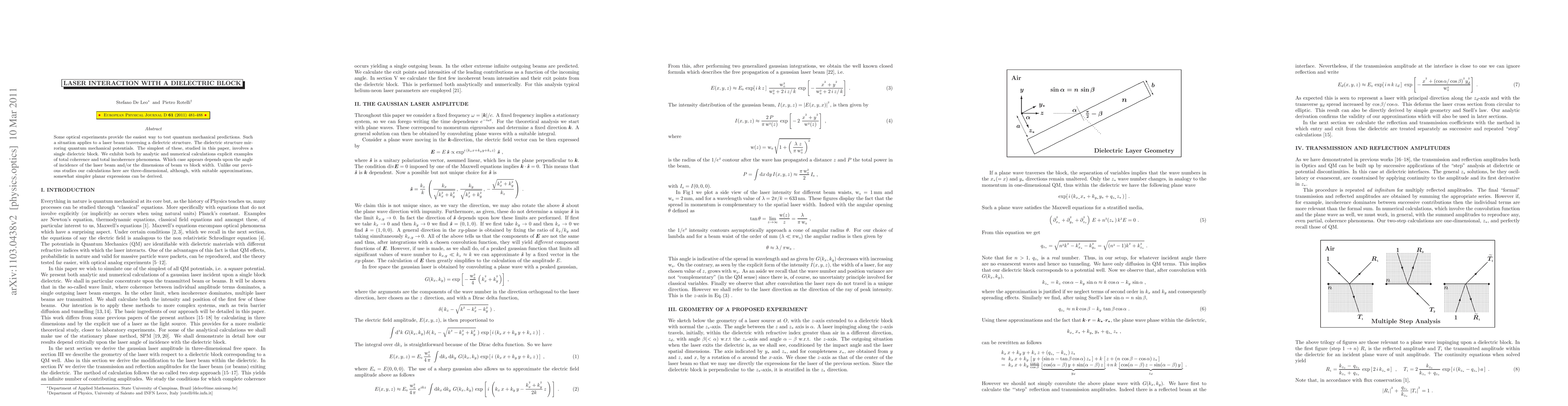 Some optical experiments provide the easiest way to test quantum mechanical predictions. Such a situation applies to a laser beam traversing a dielectric structure. The dielectric structure mir- roring quantum mechanical potentials. The simplest of these, studied in this paper, involves a single dielectric block. We exhibit both by analytic and numerical calculations explicit examples of total coherence and total incoherence phenomena. Which case appears depends upon the angle of incidence of the laser beam and/or the dimensions of beam vs block width. Unlike our previ- ous studies our calculations here are three-dimensional, although, with suitable approximations, somewhat simpler planar expressions can be derived.