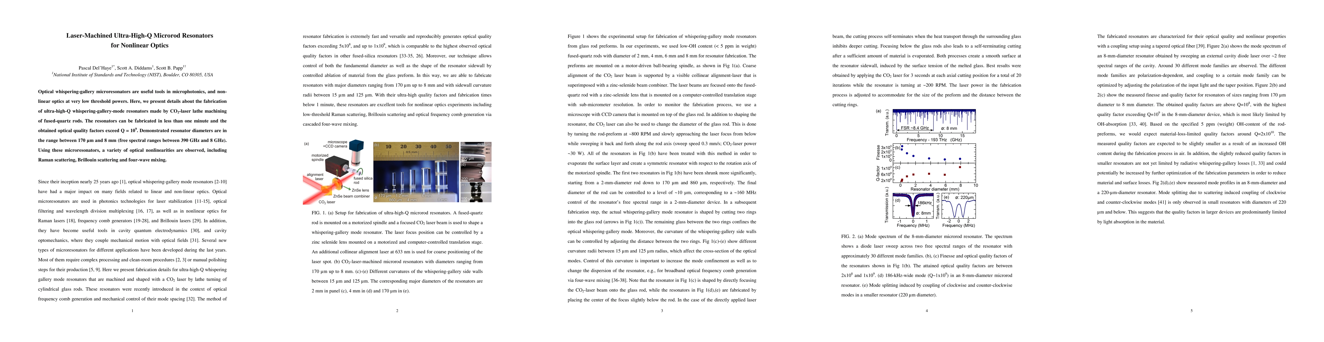 This paper details the fabrication of ultra-high-Q whispering-gallery-mode microresonators using CO2-laser machining of fused-quartz rods, achieving optical quality factors exceeding Q = 10^9. These resonators demonstrate various optical nonlinearities such as Raman, Brillouin scattering, and four-wave mixing.