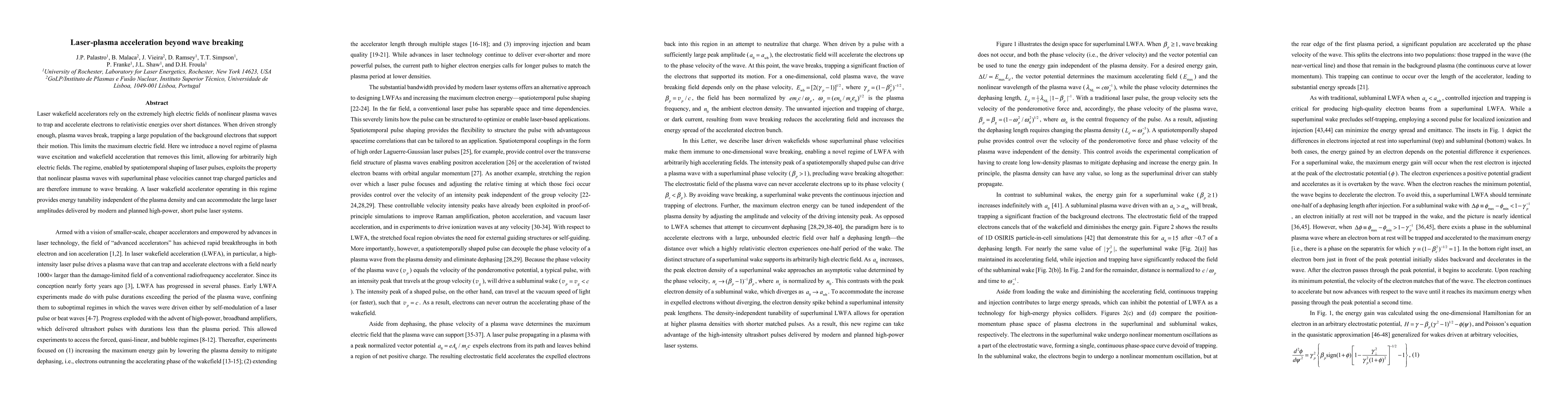 This paper introduces a new regime for laser-plasma acceleration that eliminates the wave breaking limit, allowing for arbitrarily high electric fields by exploiting nonlinear plasma waves with superluminal phase velocities. This method enables energy tunability independent of plasma density and supports large laser amplitudes from advanced high-power systems.
