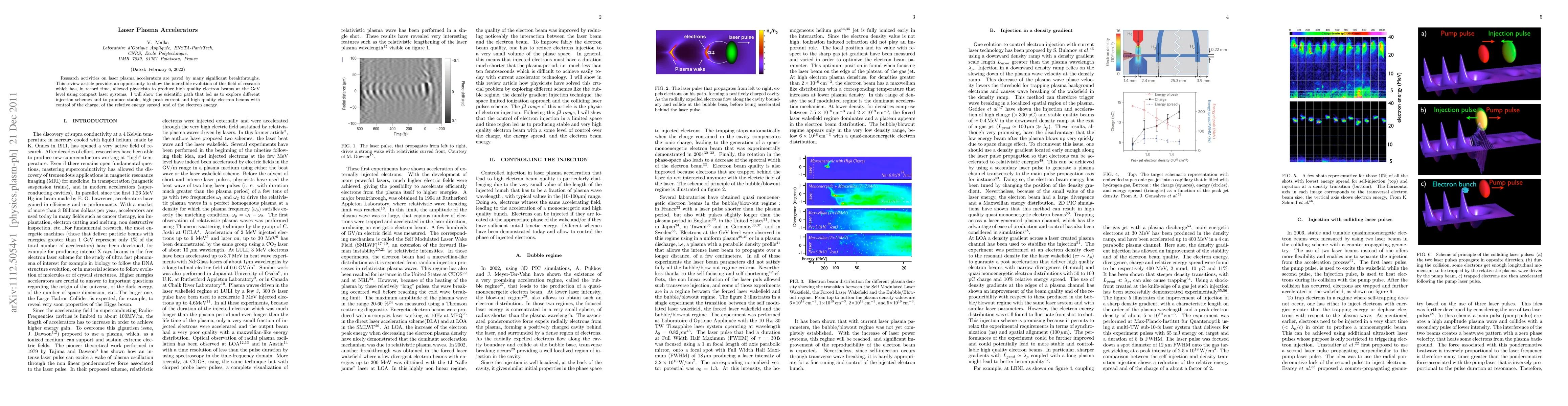 This review highlights the rapid advancements in laser plasma accelerators, showcasing the development of compact systems capable of producing high-quality GeV-level electron beams, and explores various injection schemes to achieve stable, high-peak current, and well-controlled electron beams.