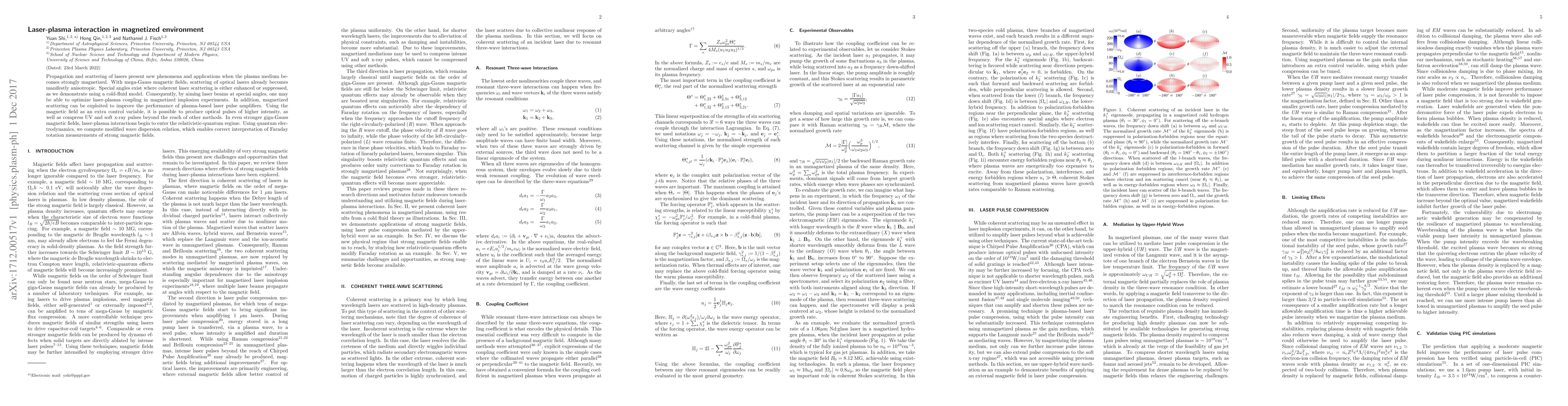 This paper investigates laser-plasma interactions in magnetized environments, revealing anisotropic scattering and enhanced/suppressed coherent scattering at special angles. It proposes optimizing laser-plasma coupling in implosion experiments and improving plasma-based laser amplifiers by leveraging magnetic fields to produce higher intensity optical pulses and compress UV and soft x-ray pulses.