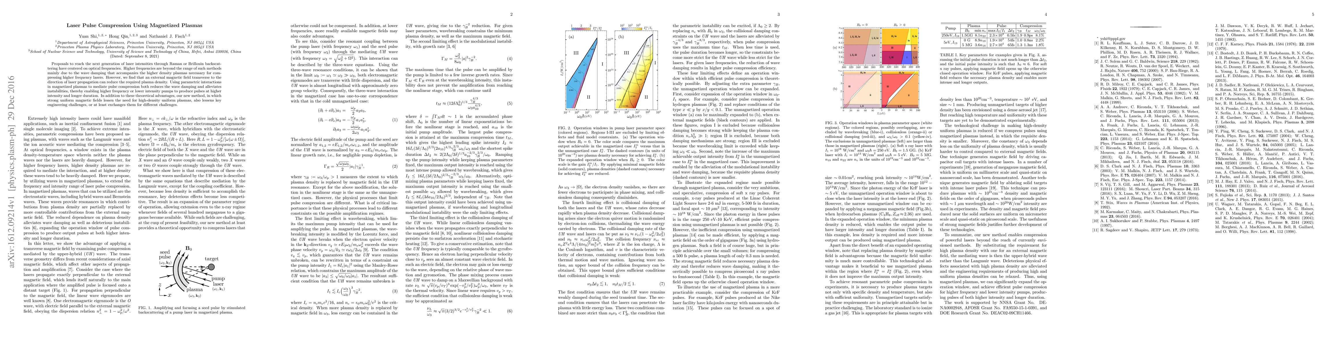 This paper proposes a method to compress laser pulses using magnetized plasmas, which reduces wave damping and stabilizes the process, enabling higher intensity pulses without requiring high-density plasmas. This approach also shifts engineering challenges to different, potentially more manageable issues.