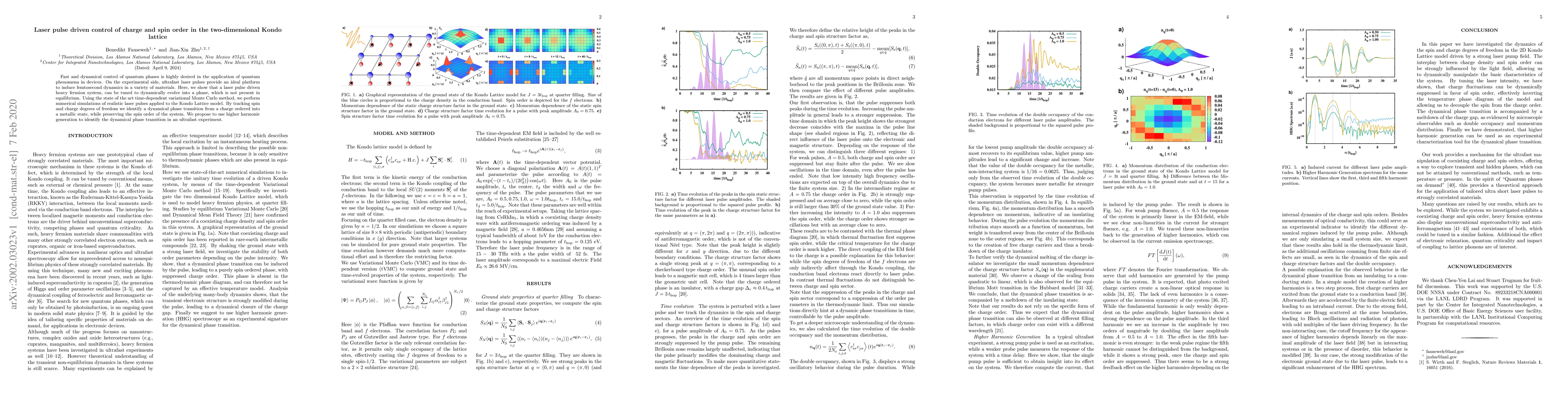 Fast and dynamical control of quantum phases is highly desired in the application of quantum phenomena in devices. On the experimental side, ultrafast laser pulses provide an ideal platform to induce femtosecond dynamics in a variety of materials. Here, we show that a laser pulse driven heavy fermion system, can be tuned to dynamically evolve into a phase, which is not present in equilibrium. Using the state-of-the-art time-dependent variational Monte Carlo method, we perform numerical simulations of realistic laser pulses applied to the Kondo Lattice model. By tracking spin and charge degrees of freedom we identify a dynamical phase transition from a charge ordered into a metallic state, while preserving the spin order of the system. We propose to use higher harmonic generation to identify the dynamical phase transition in an ultrafast experiment.