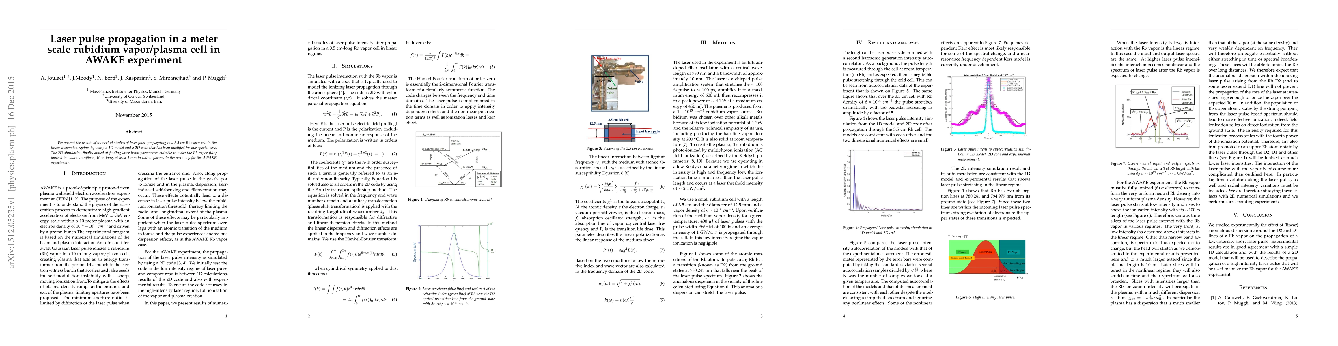 The research numerically models laser pulse propagation in a 3.5 cm rubidium vapor cell, employing a 1D model and a modified 2D code. The aim is to identify laser parameters for full rubidium vapor ionization, creating a uniform, 10 m-long, 1 mm radius plasma for the AWAKE experiment.