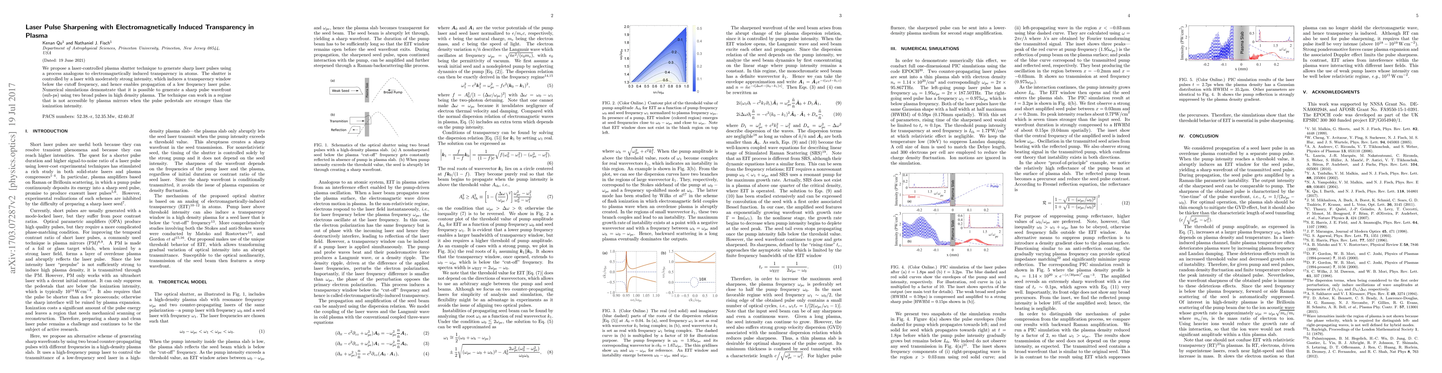 This paper proposes a laser-controlled plasma shutter technique to generate sharp laser pulses using electromagnetically-induced transparency, enabling sub-ps pulse wavefronts in high density plasma, even when traditional plasma mirrors fail due to strong pulse pedestals. Numerical simulations confirm the feasibility of this innovative method.